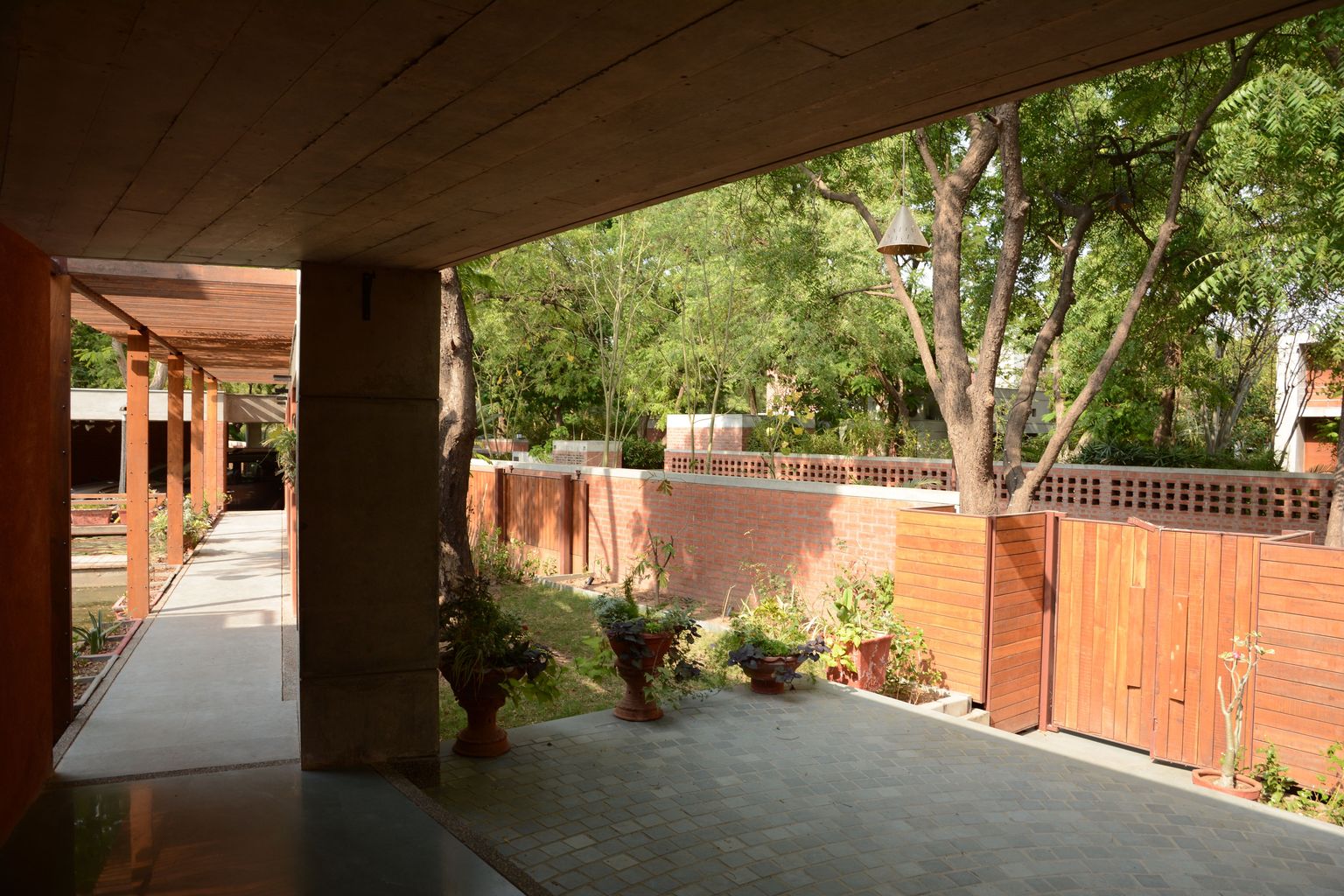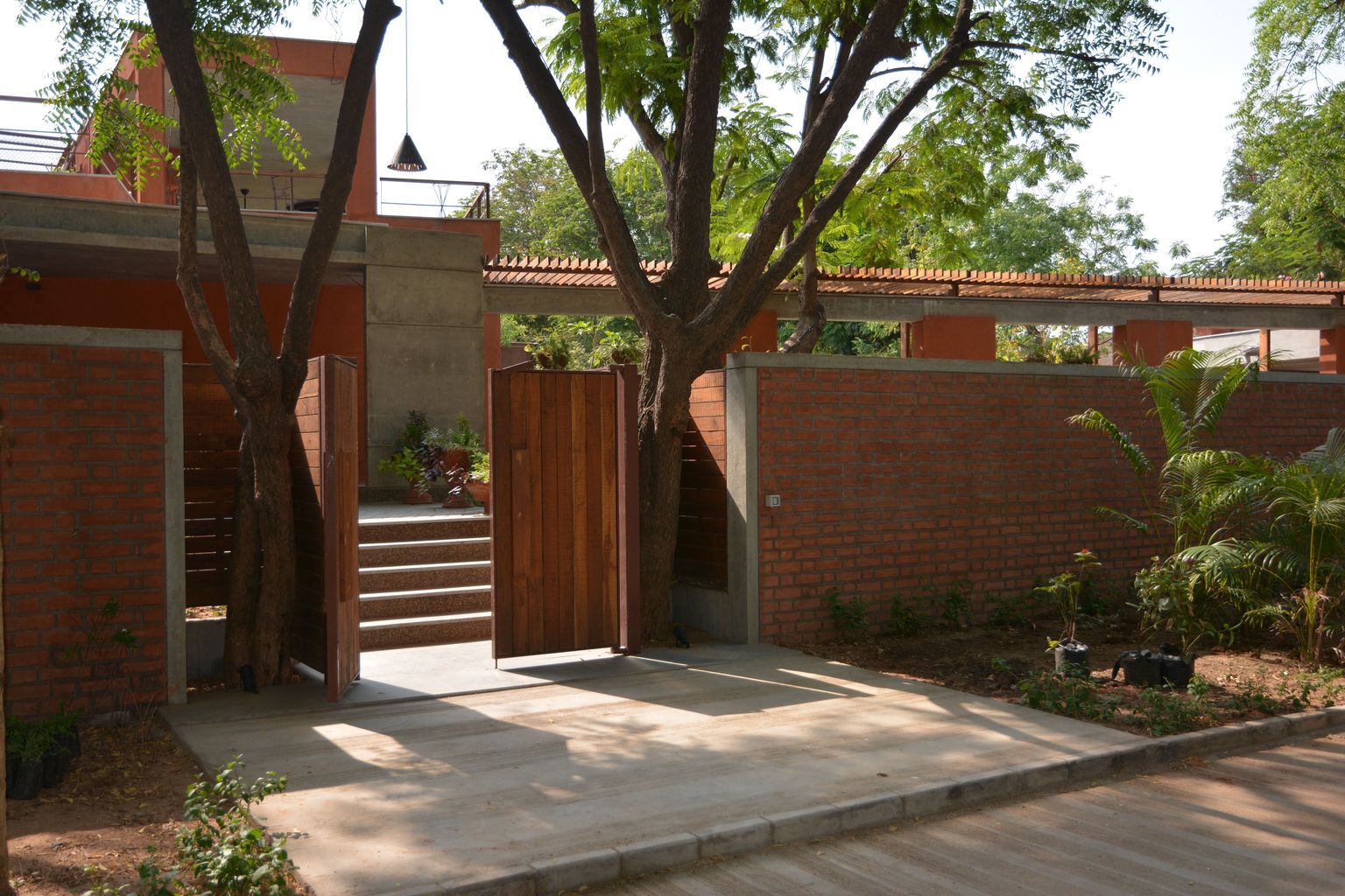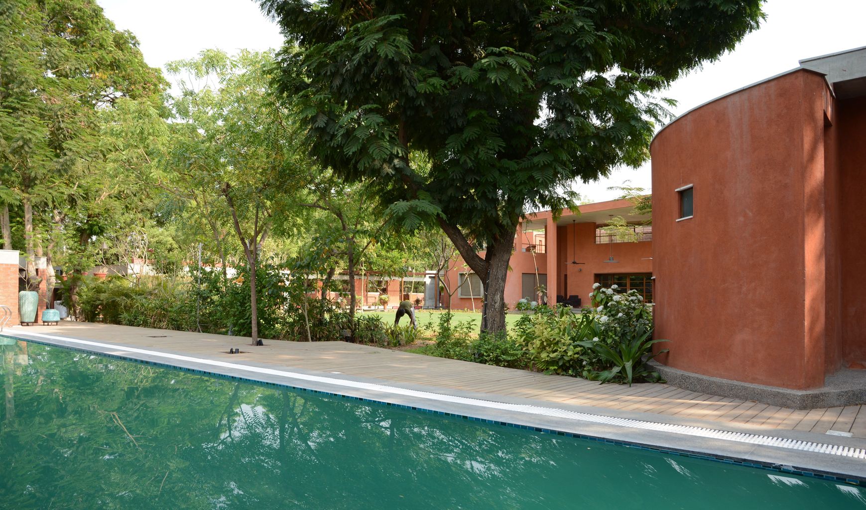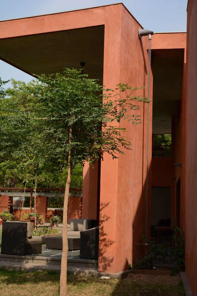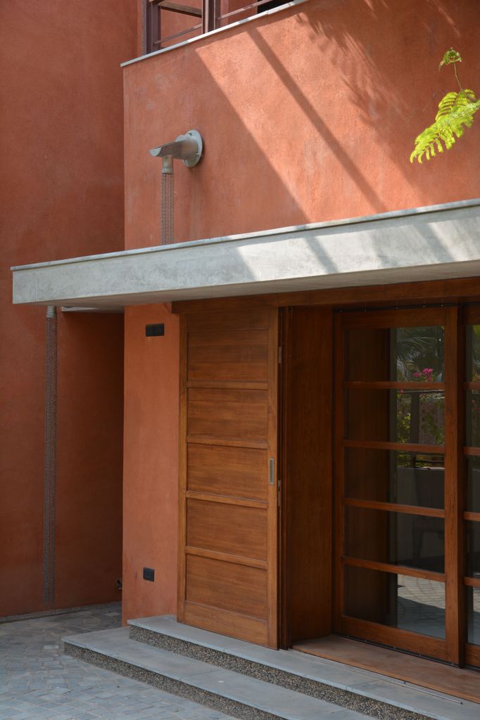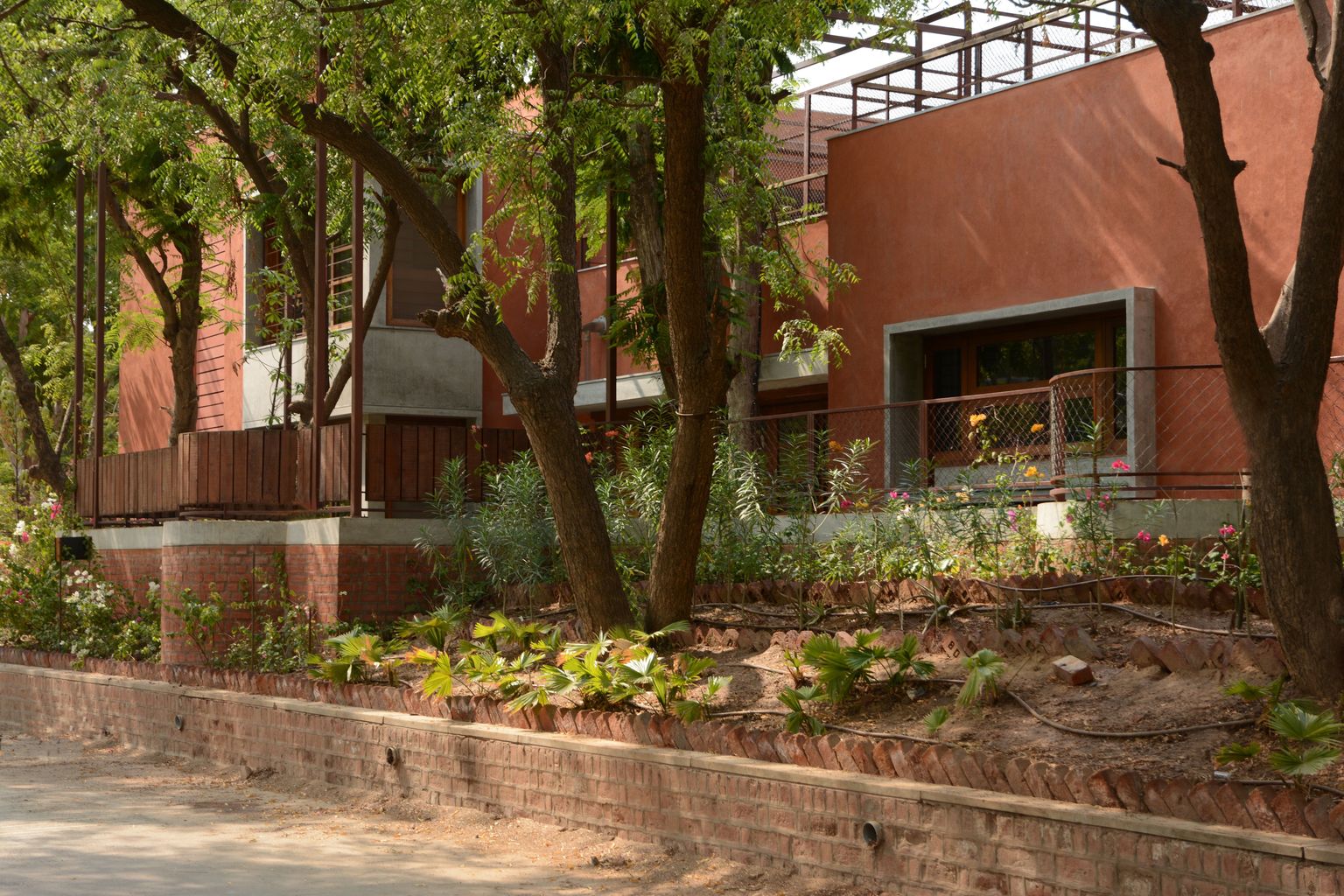 Deriving an expression of its own, it uses the language of bold masonry walls decked with lime and dolomite plasters that lend congruency to its neighbors, amidst prototypical lots of land with homes in exposed brick and concrete. The challenge was to define an identity and address pertinent issues of appropriate materials, thermal comfort and engage with the public edge and land in a meaningful manner.