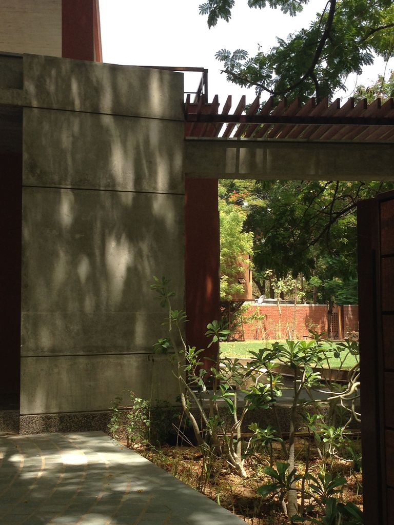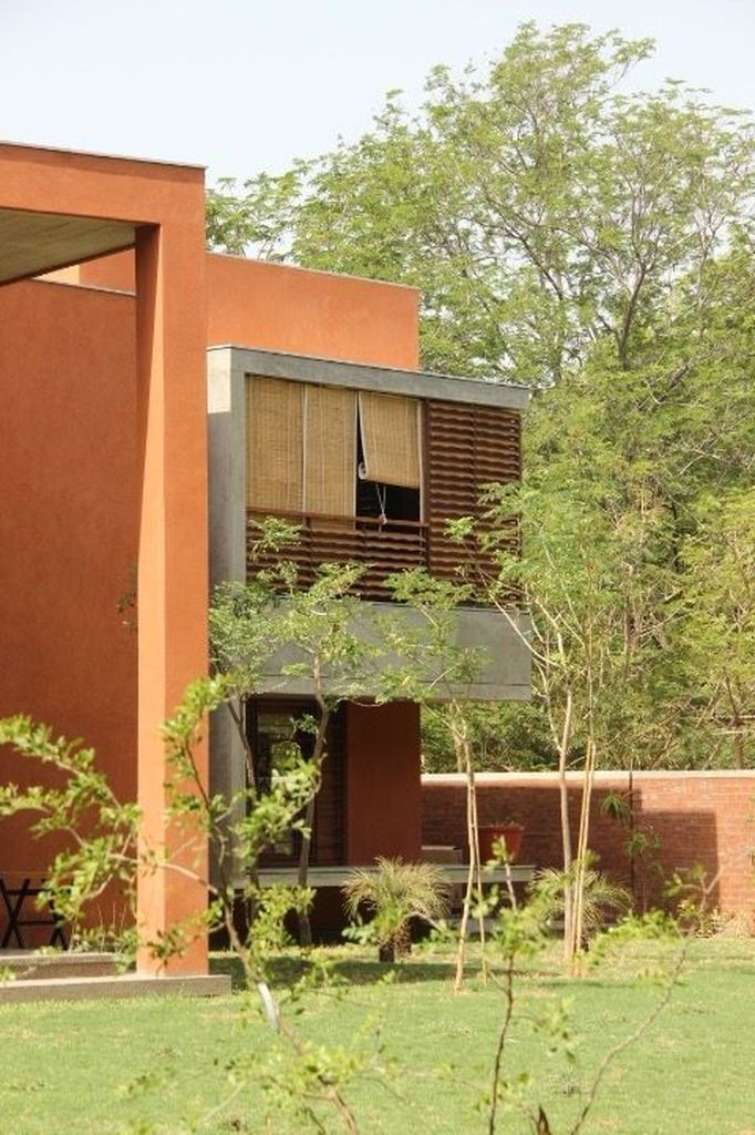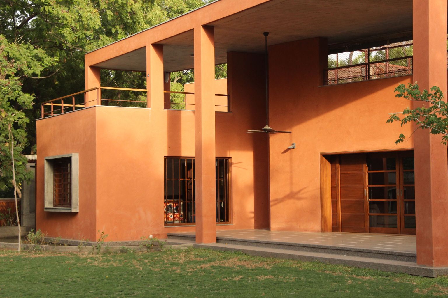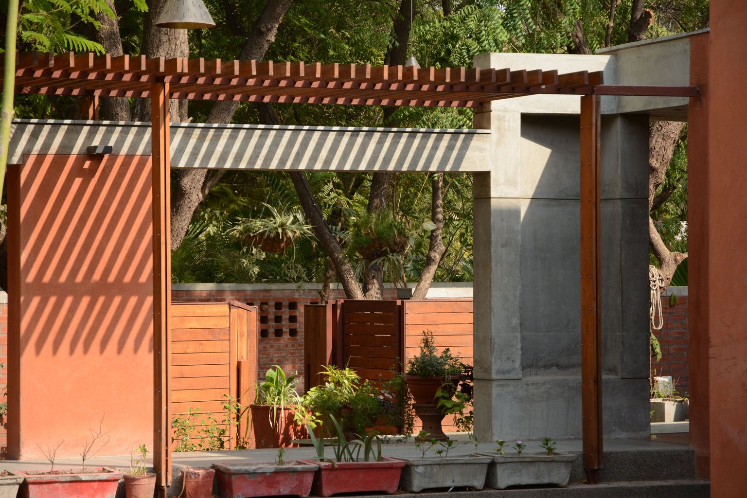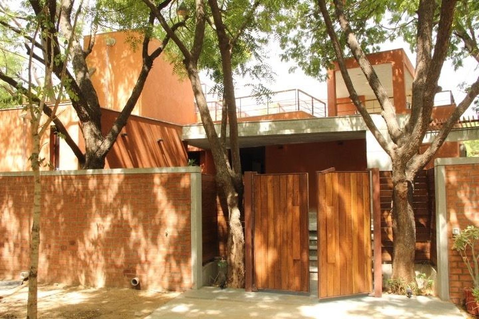 Deriving an expression of its own, it uses the language of bold masonry walls decked with lime and dolomite plasters that lend congruency to its neighbors, amidst prototypical lots of land with homes in exposed brick and concrete. The challenge was to define an identity and address pertinent issues of appropriate materials, thermal comfort and engage with the public edge and land in a meaningful manner.