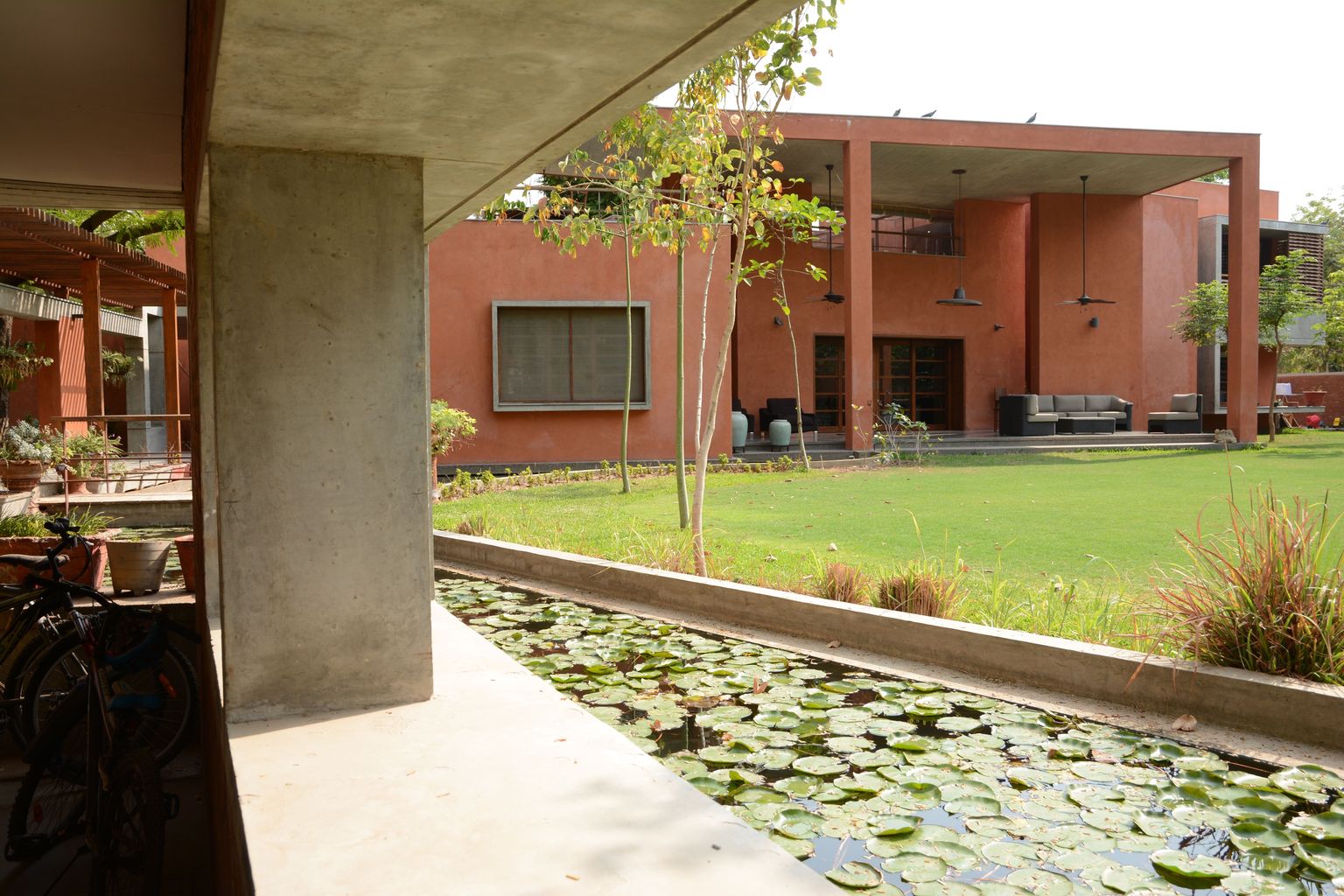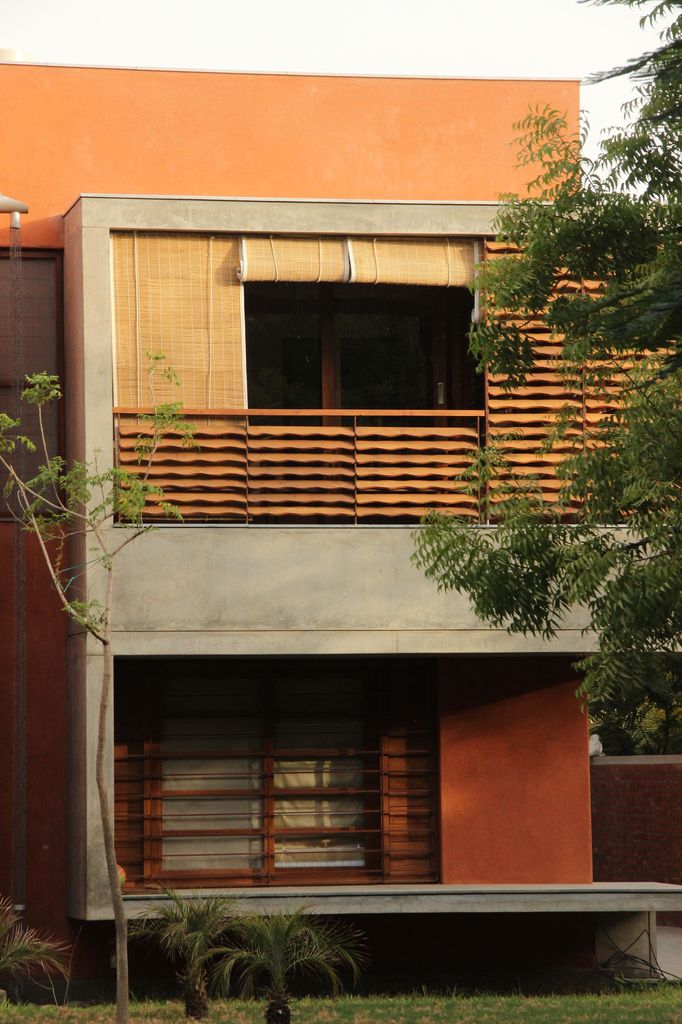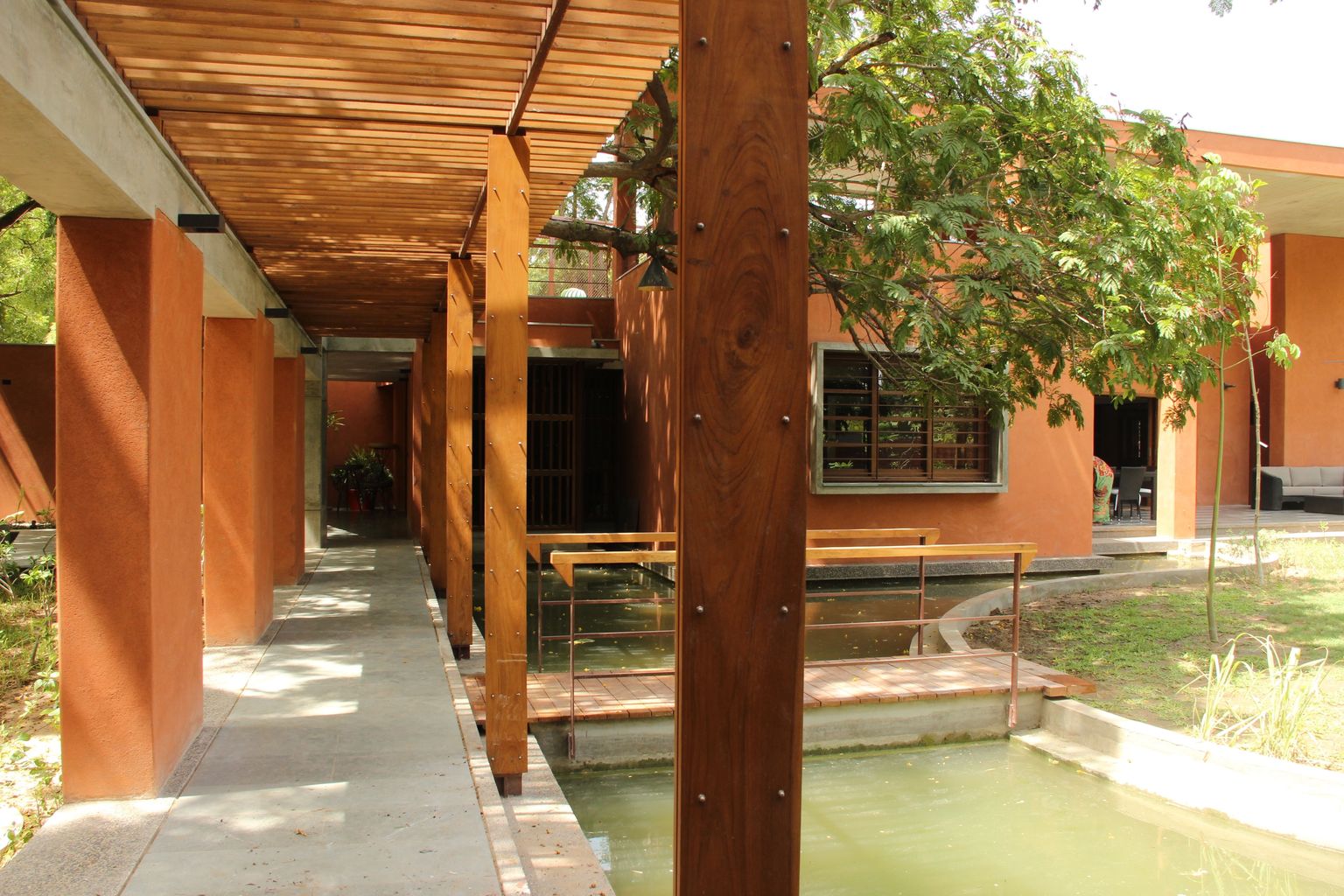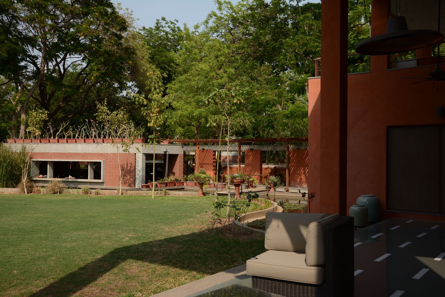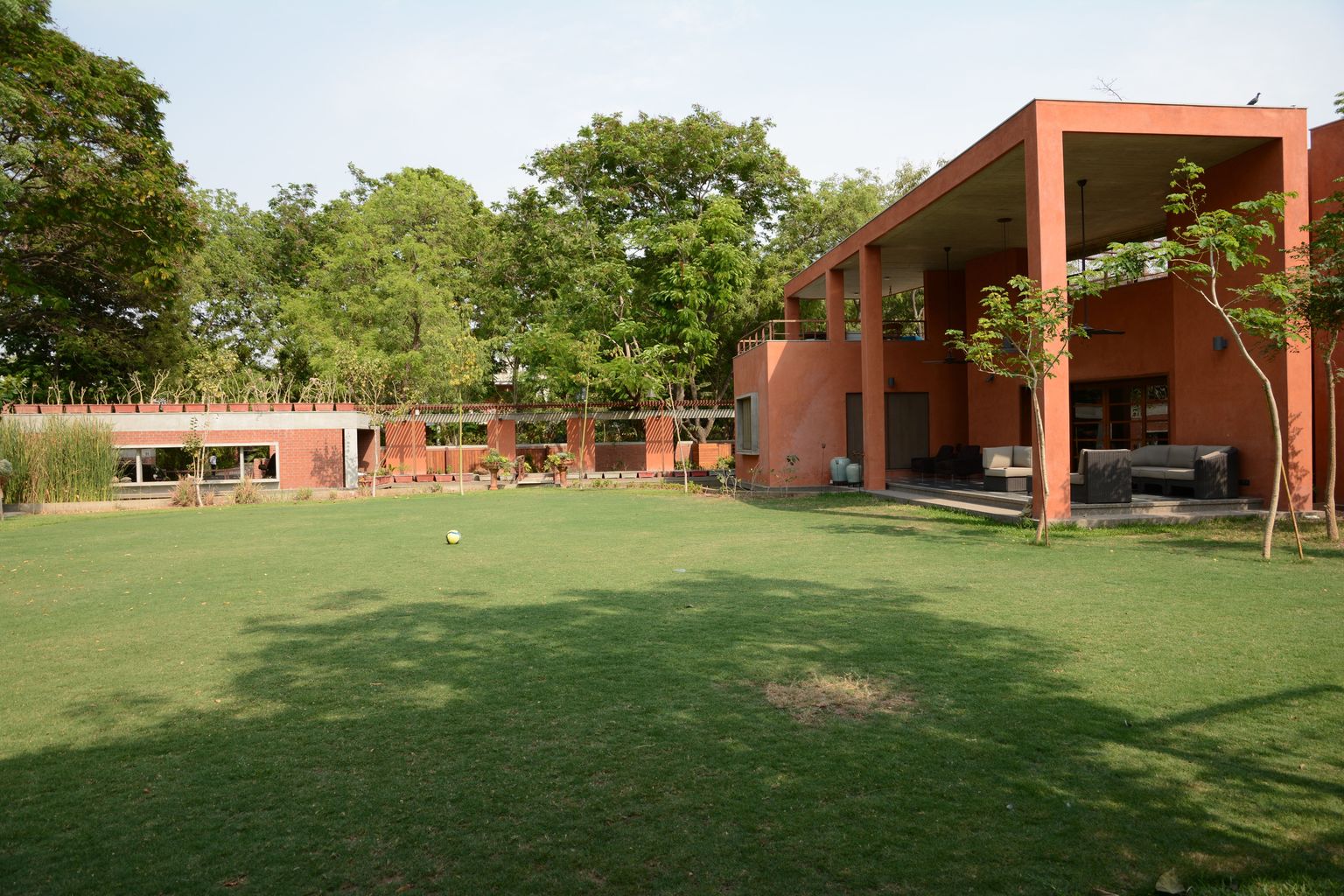 Deriving an expression of its own, it uses the language of bold masonry walls decked with lime and dolomite plasters that lend congruency to its neighbors, amidst prototypical lots of land with homes in exposed brick and concrete. The challenge was to define an identity and address pertinent issues of appropriate materials, thermal comfort and engage with the public edge and land in a meaningful manner.