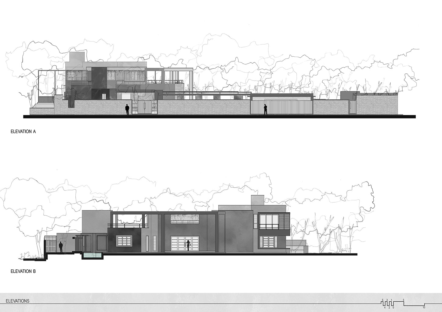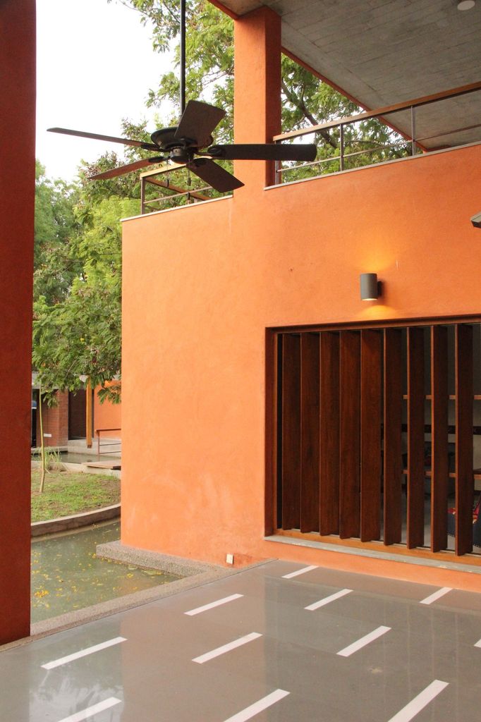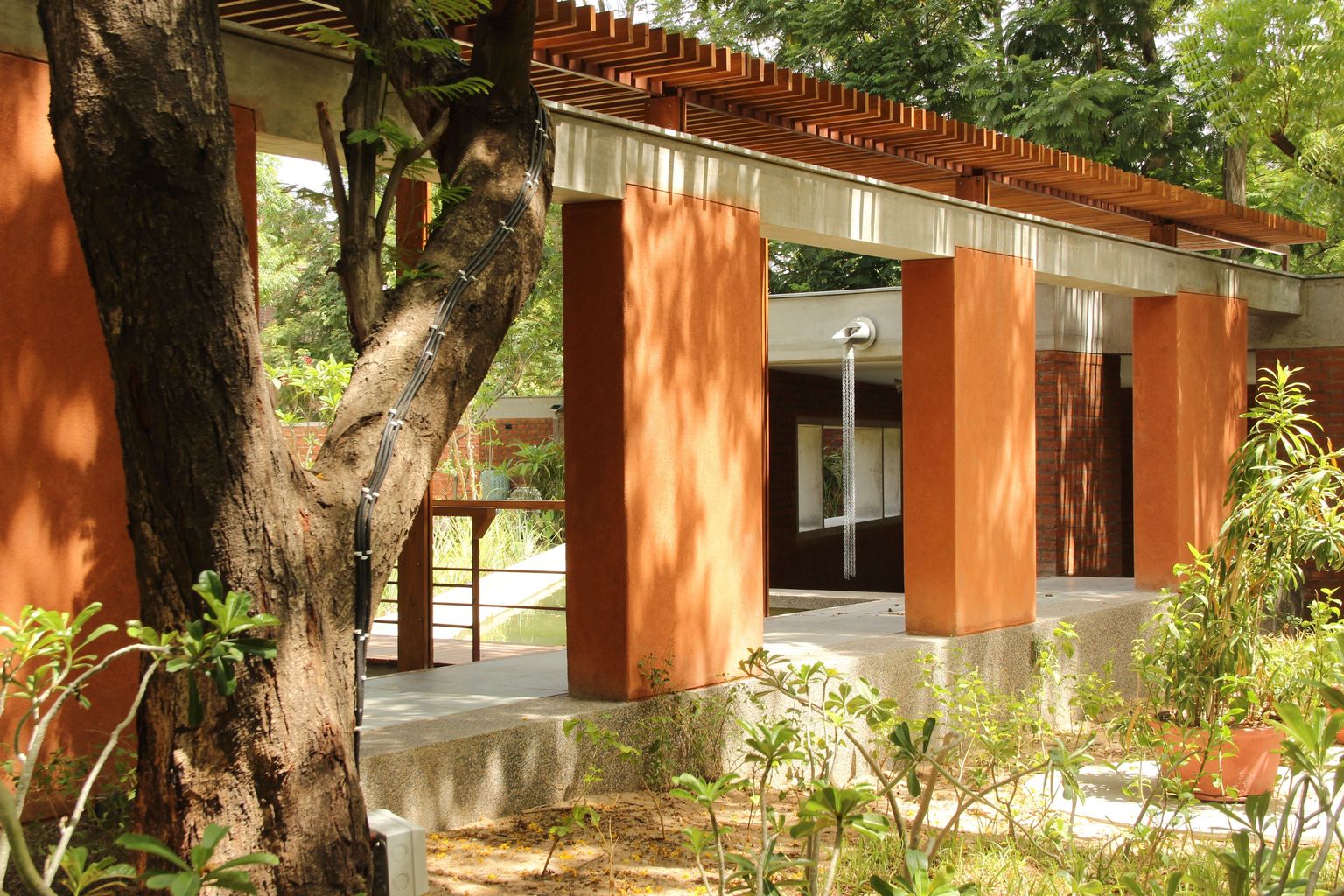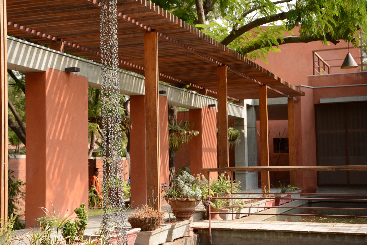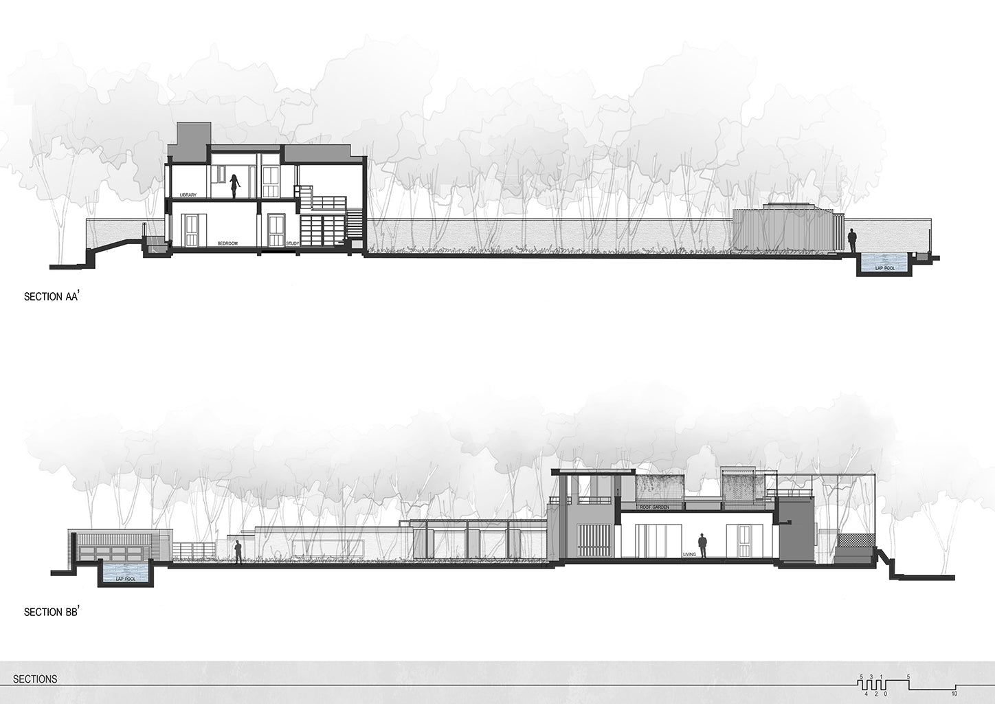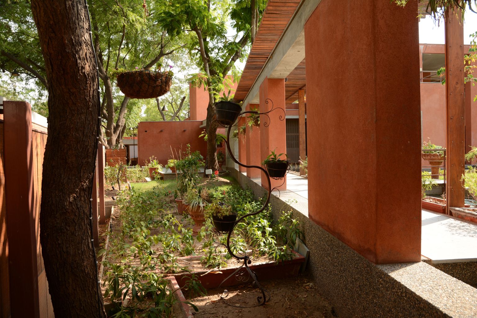 Deriving an expression of its own, it uses the language of bold masonry walls decked with lime and dolomite plasters that lend congruency to its neighbors, amidst prototypical lots of land with homes in exposed brick and concrete. The challenge was to define an identity and address pertinent issues of appropriate materials, thermal comfort and engage with the public edge and land in a meaningful manner.