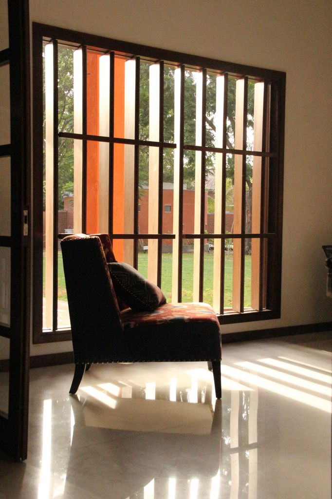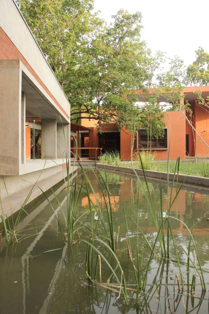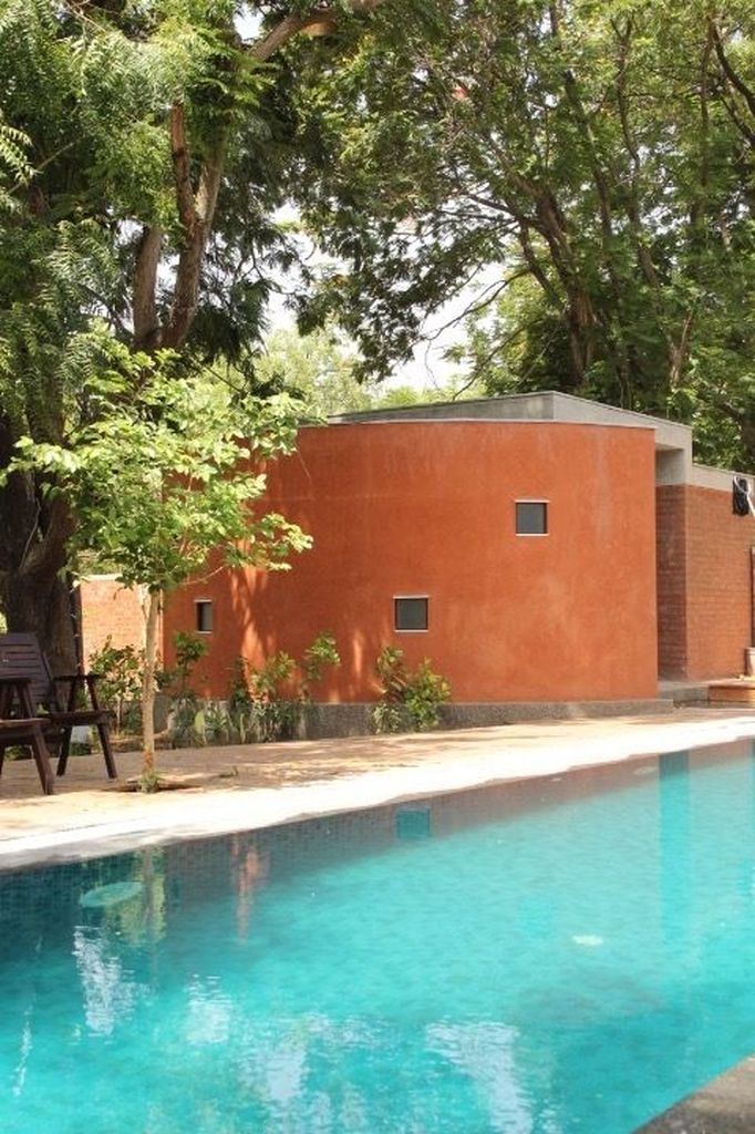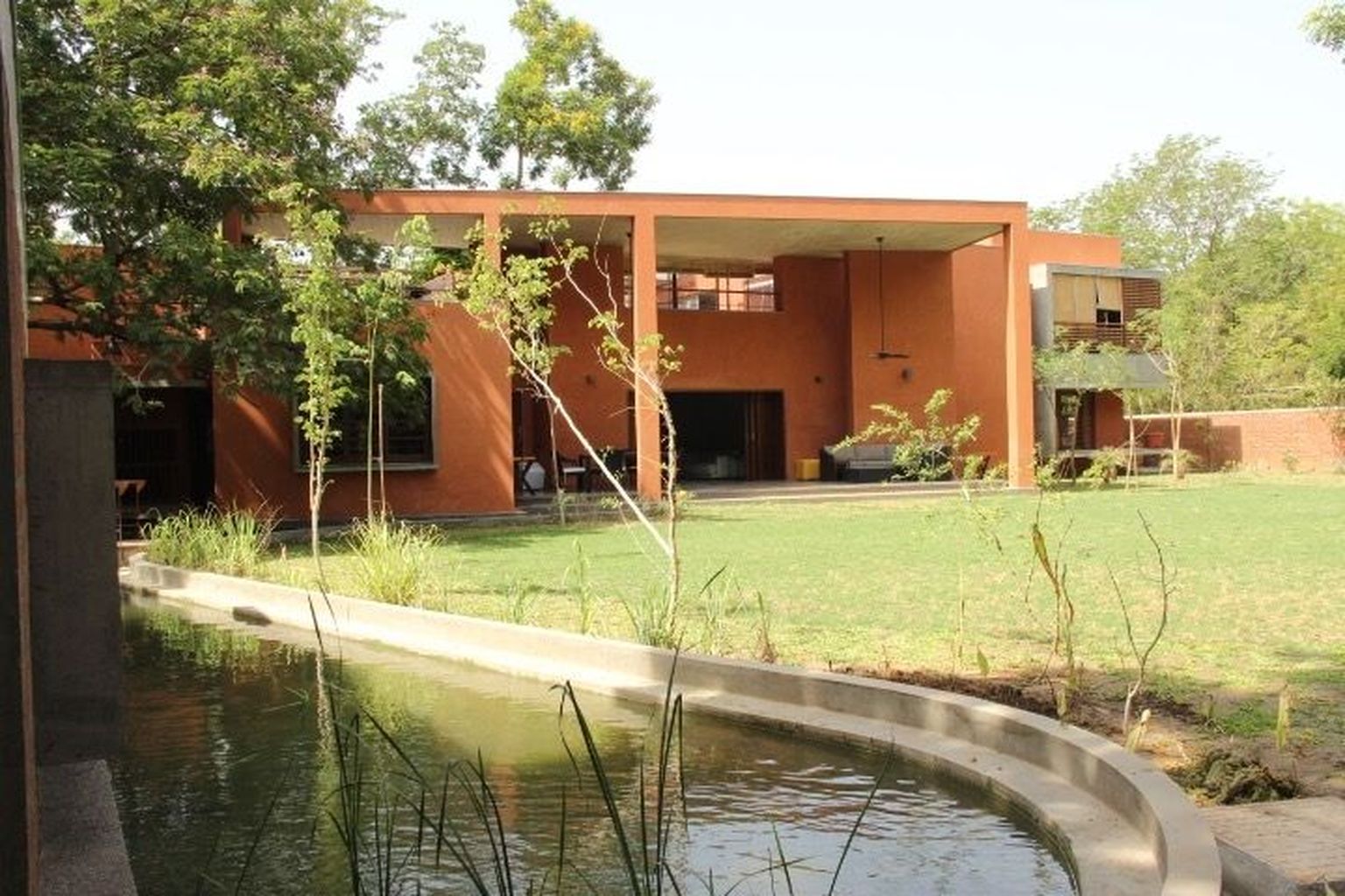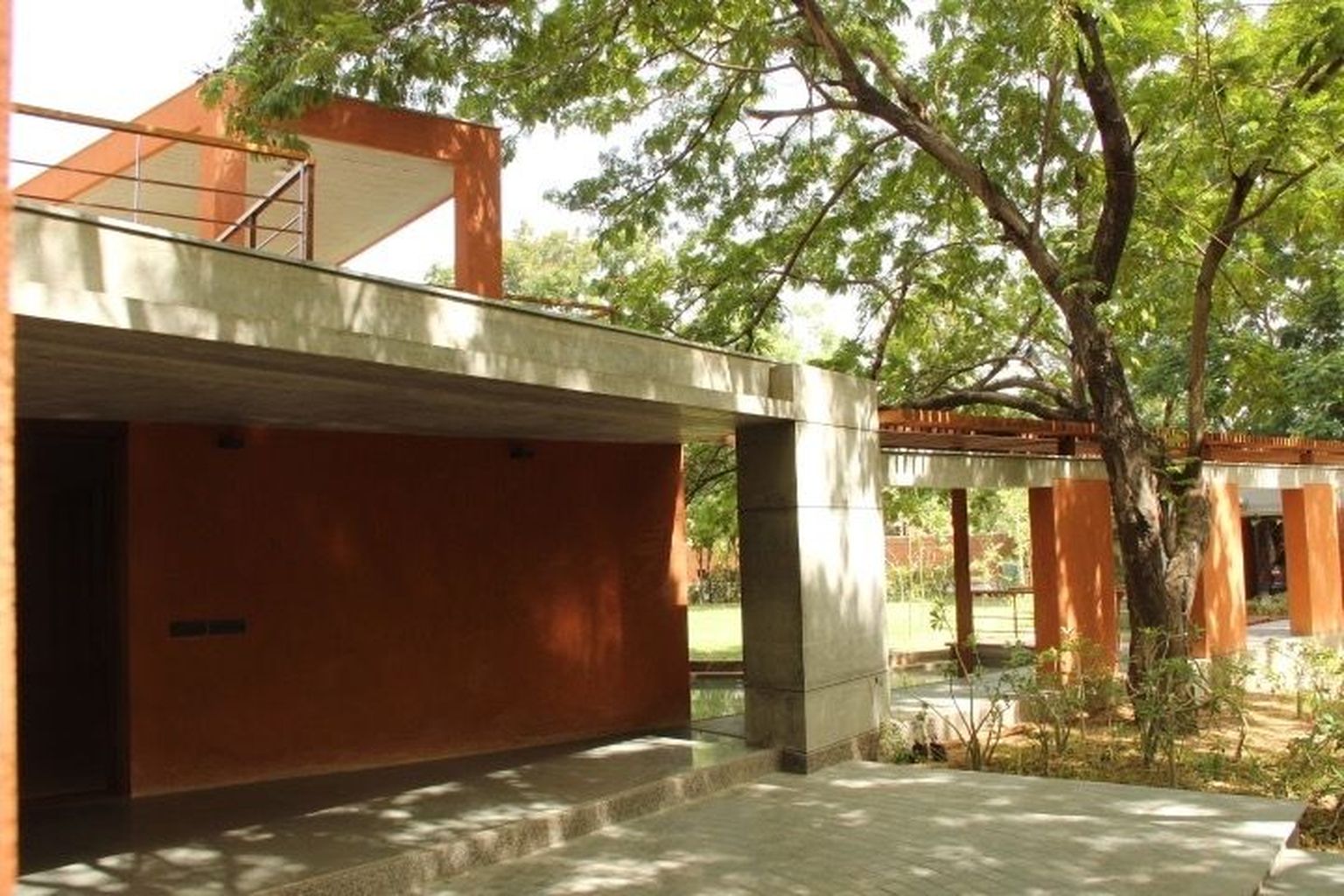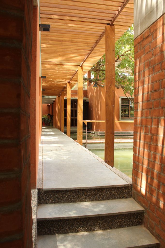Deriving an expression of its own, it uses the language of bold masonry walls decked with lime and dolomite plasters that lend congruency to its neighbors, amidst prototypical lots of land with homes in exposed brick and concrete. The challenge was to define an identity and address pertinent issues of appropriate materials, thermal comfort and engage with the public edge and land in a meaningful manner.