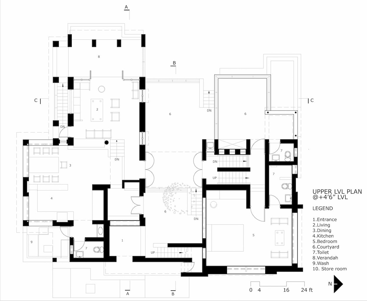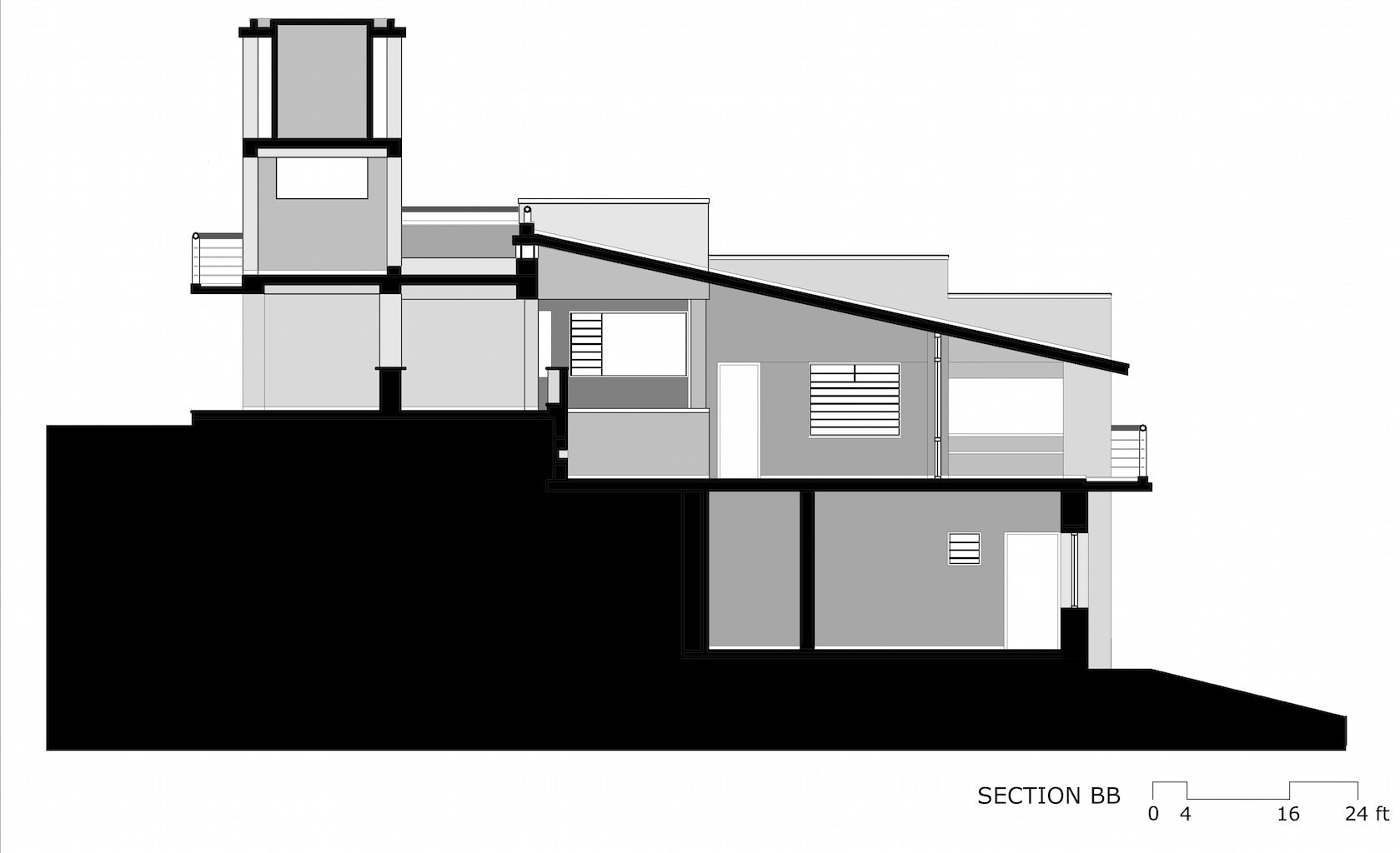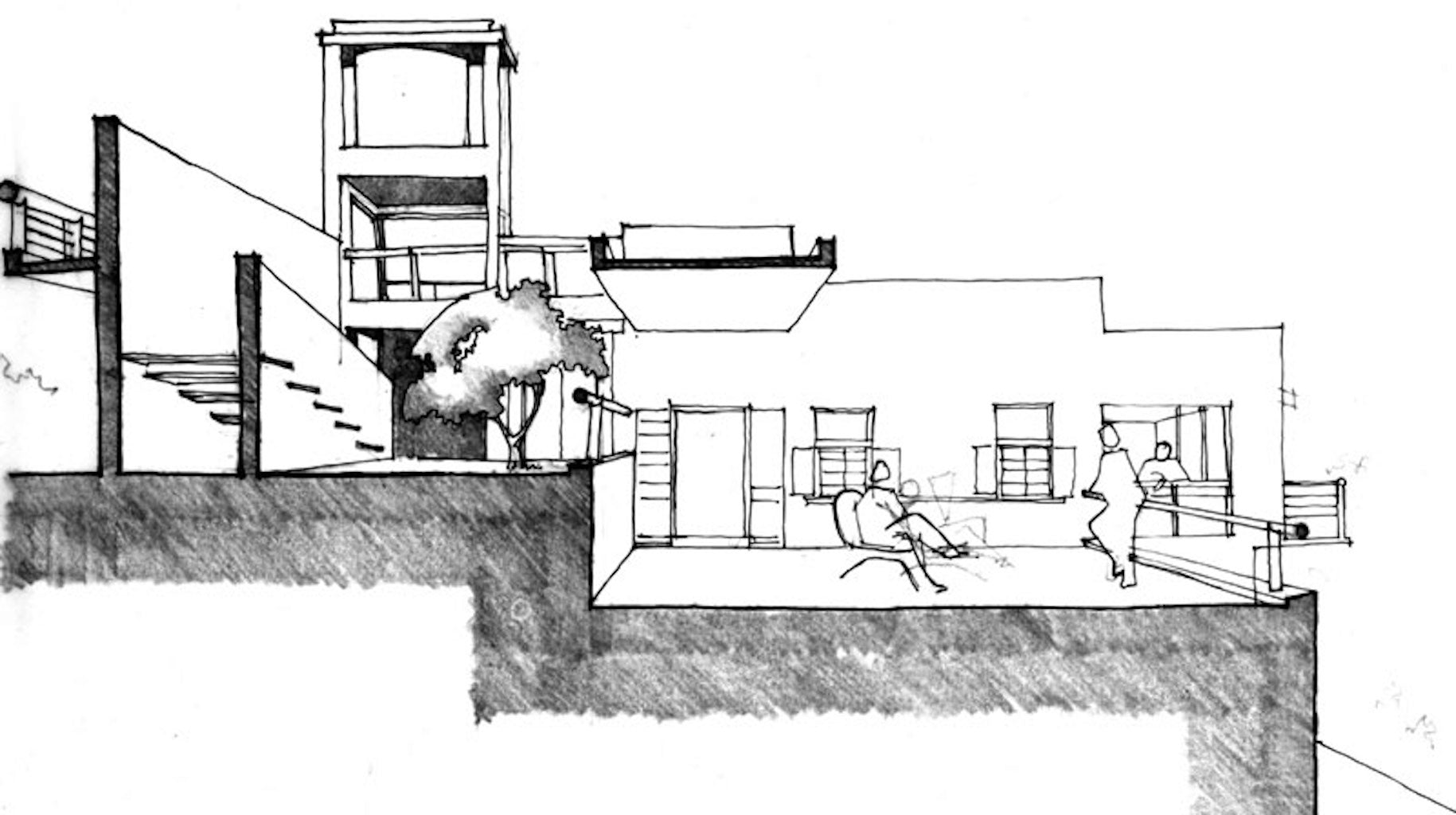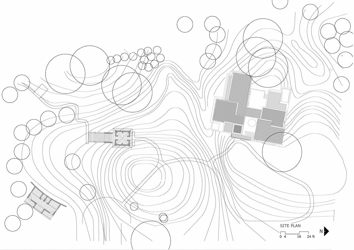 The clients had asked for a house with a view, a place where they could relax and unwind, and also entertain friends. The design responded by sensitively integrating the local topography and the existing vegetation into the plan for the house.