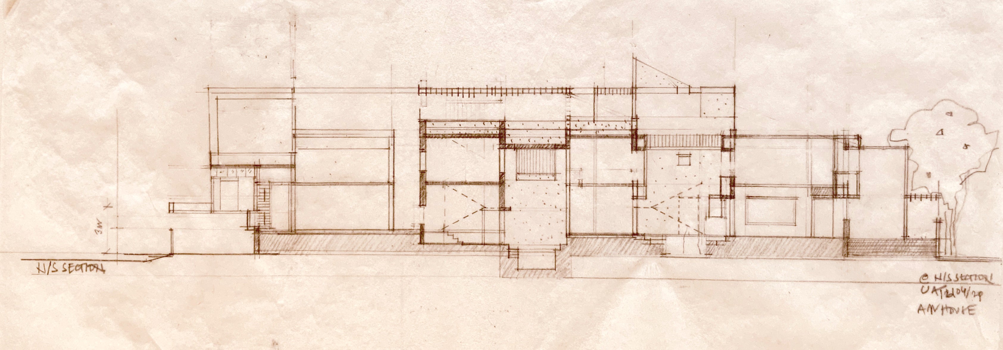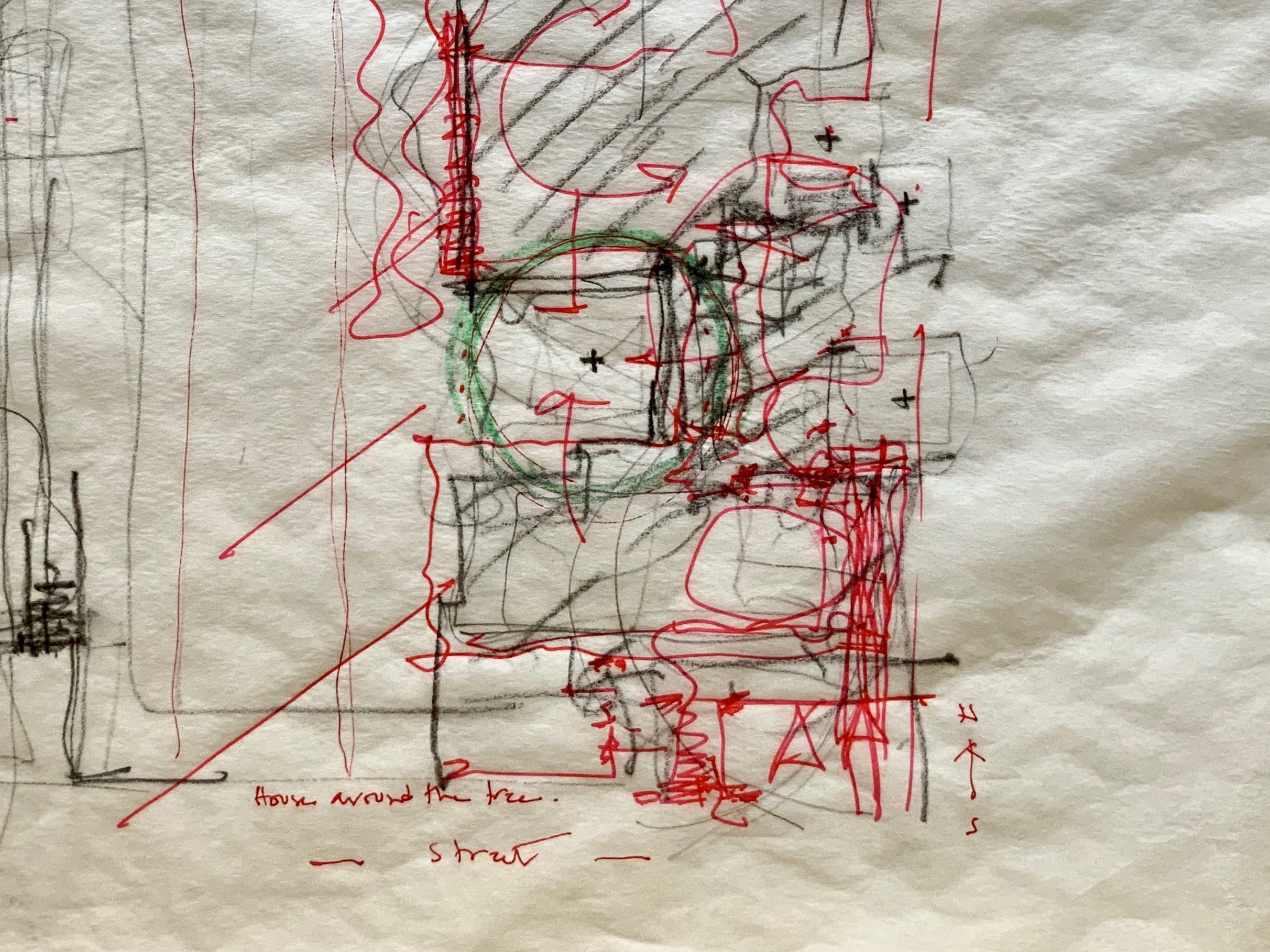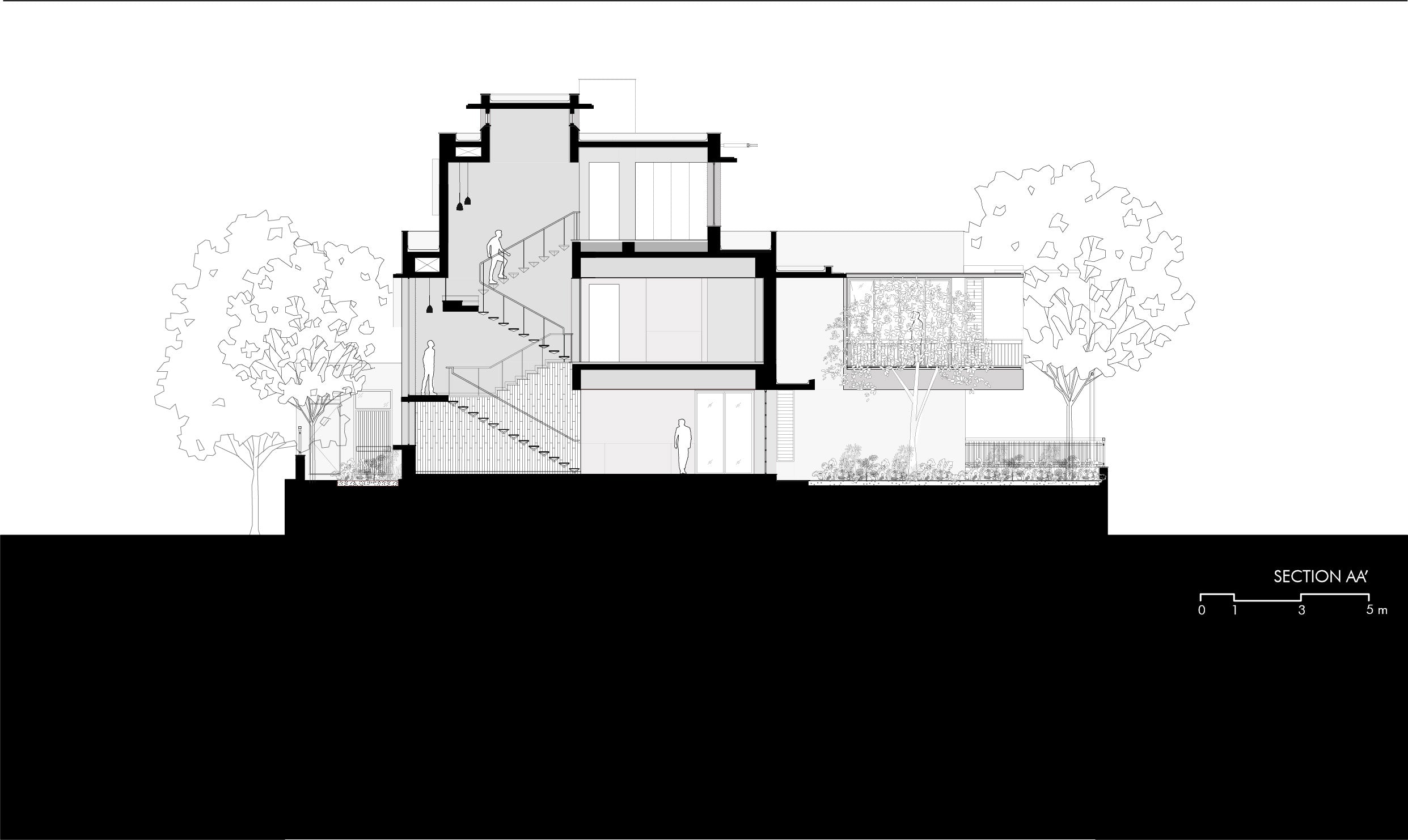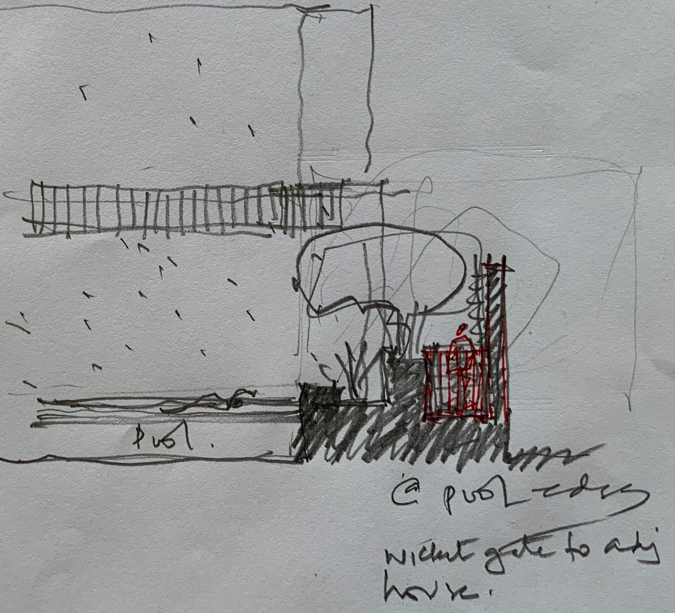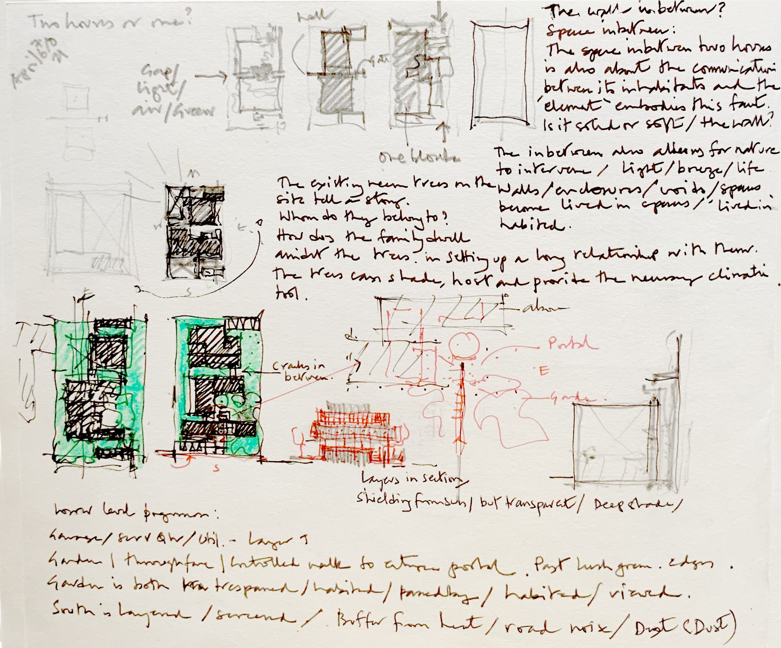 The family home as a duality. Separate yet conjoined in ways. Detail and material articulation as armature for shade, rainwater and surfaces to resist summer heat, enabling natural cover to take over.