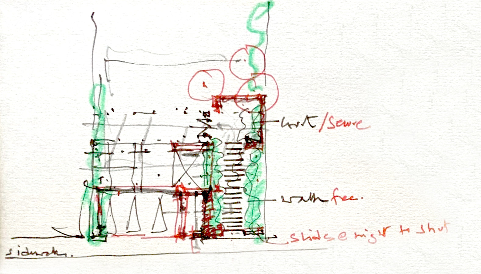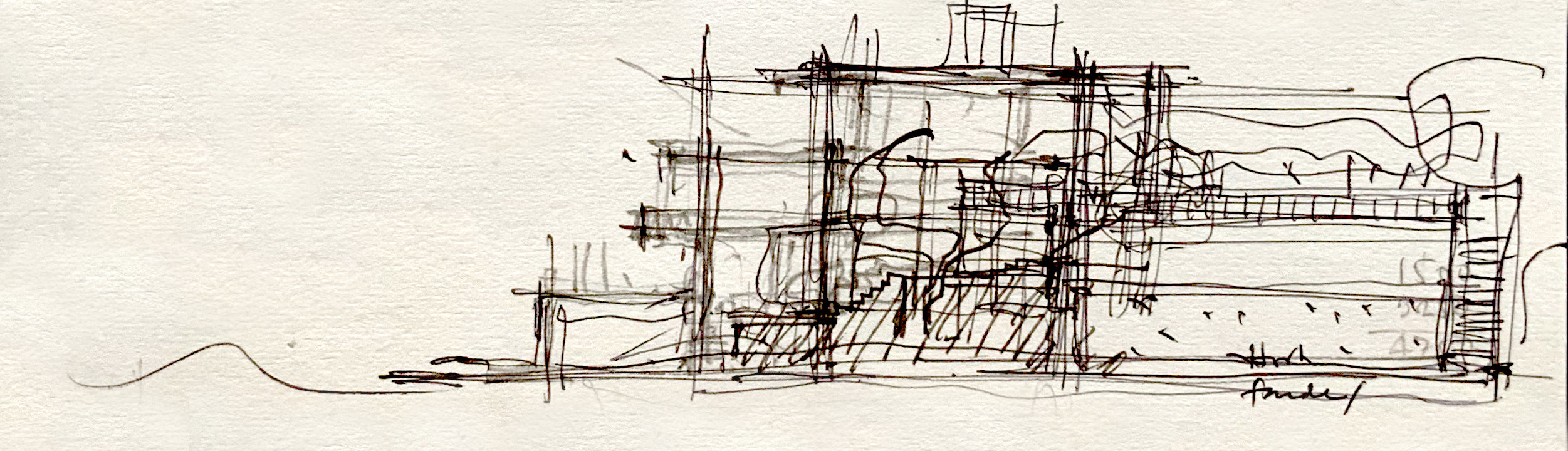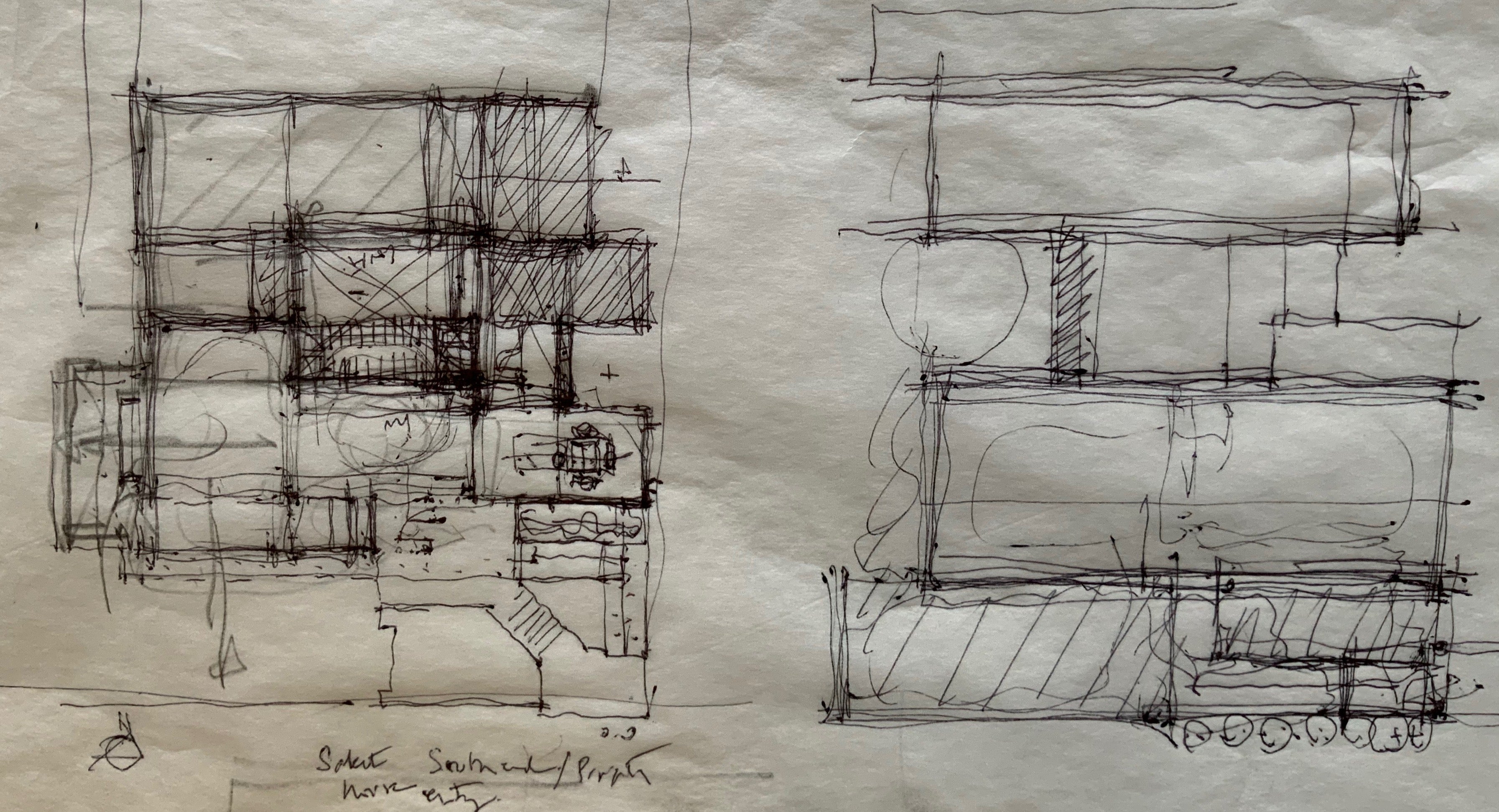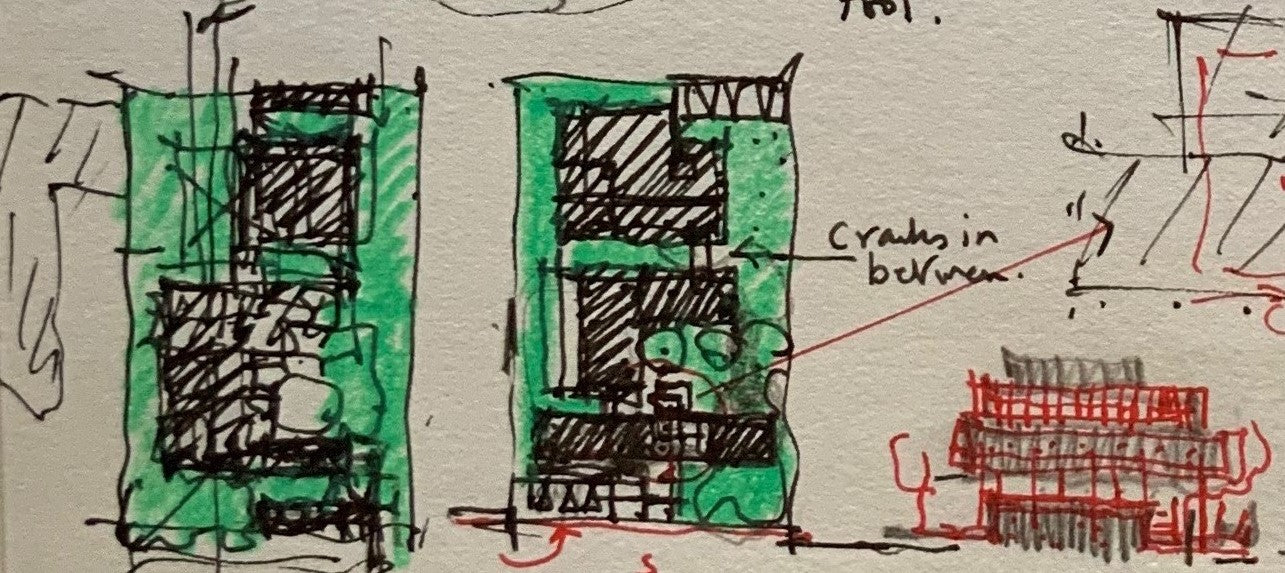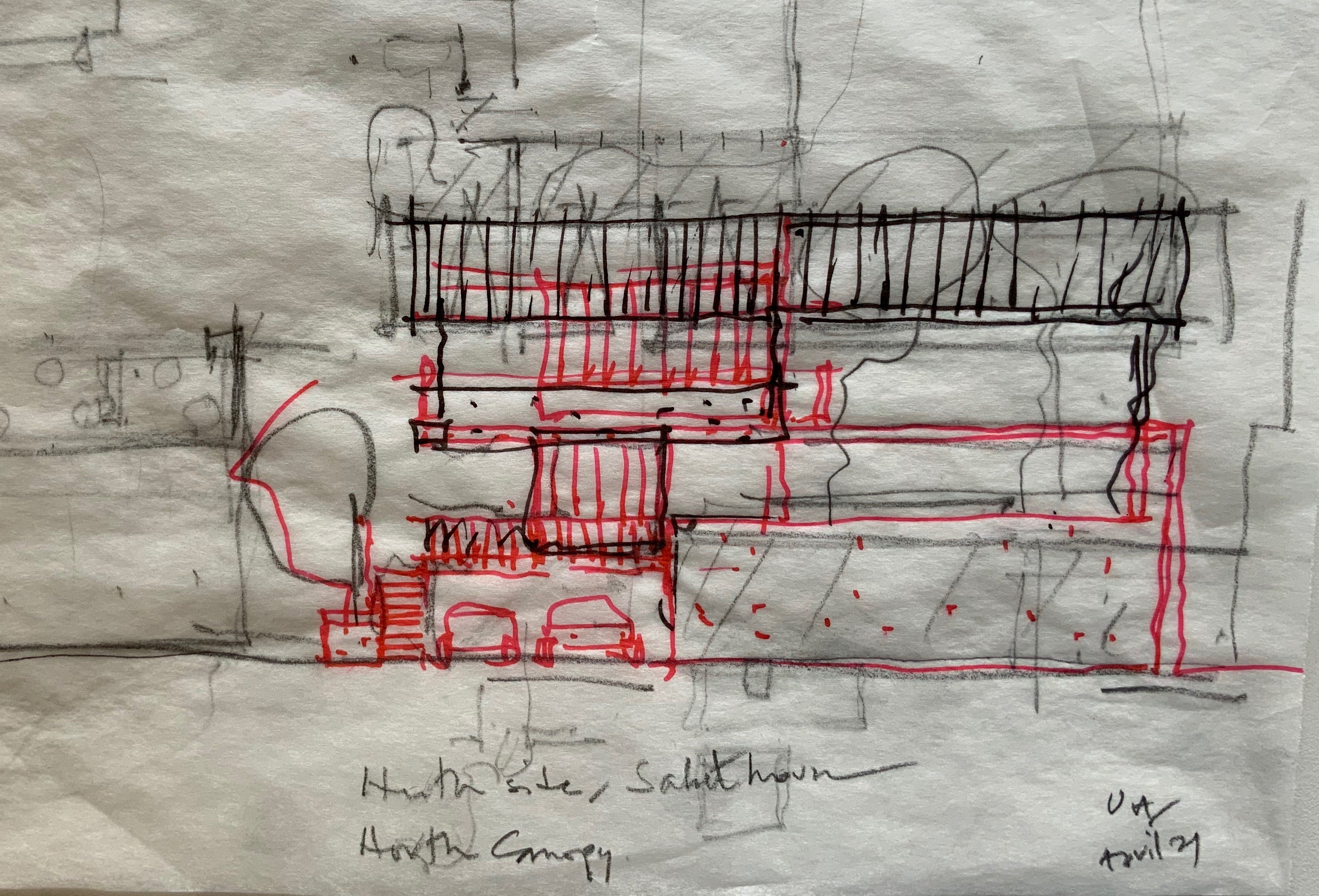 The family home as a duality. Separate yet conjoined in ways. Detail and material articulation as armature for shade, rainwater and surfaces to resist summer heat, enabling natural cover to take over.
