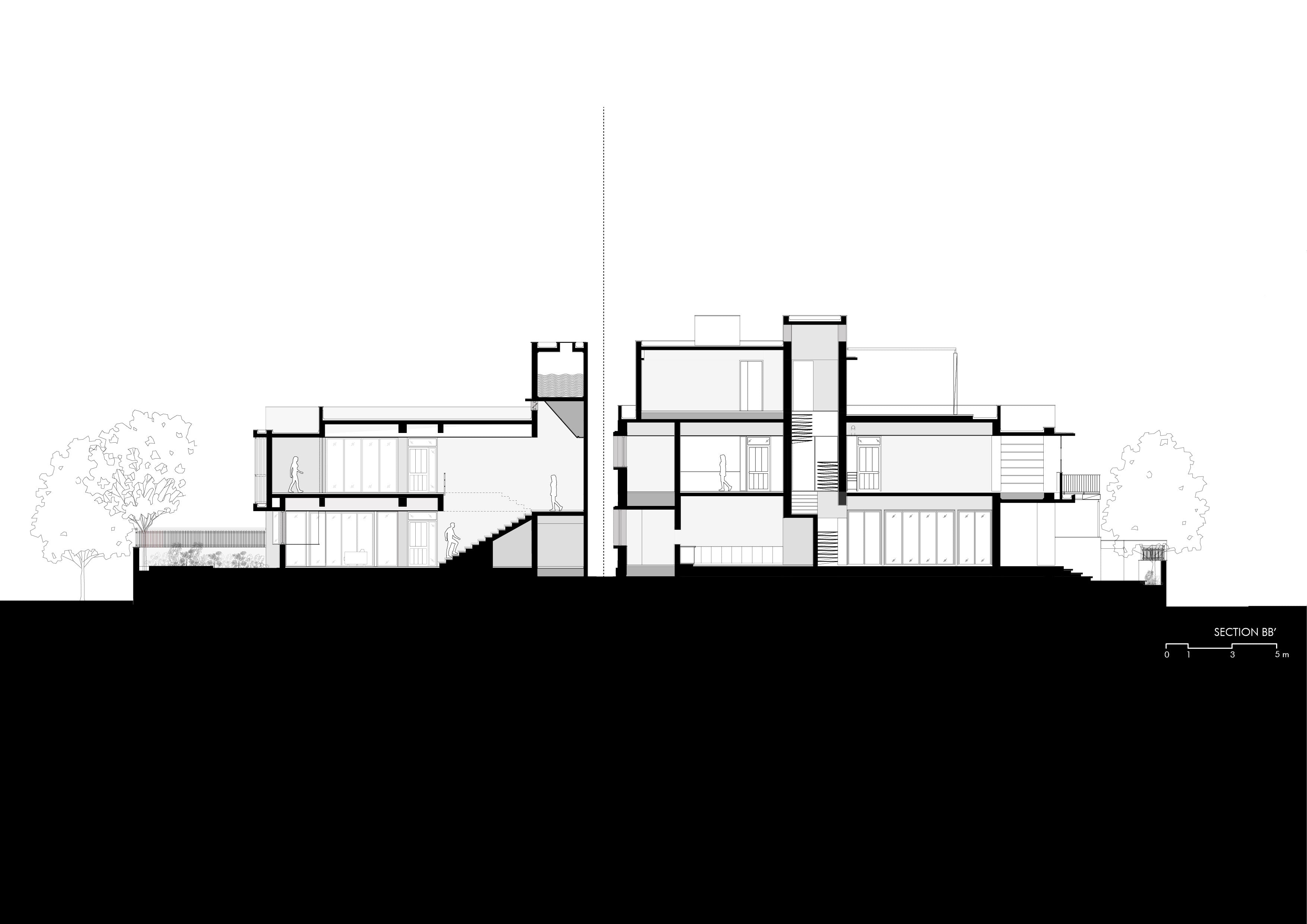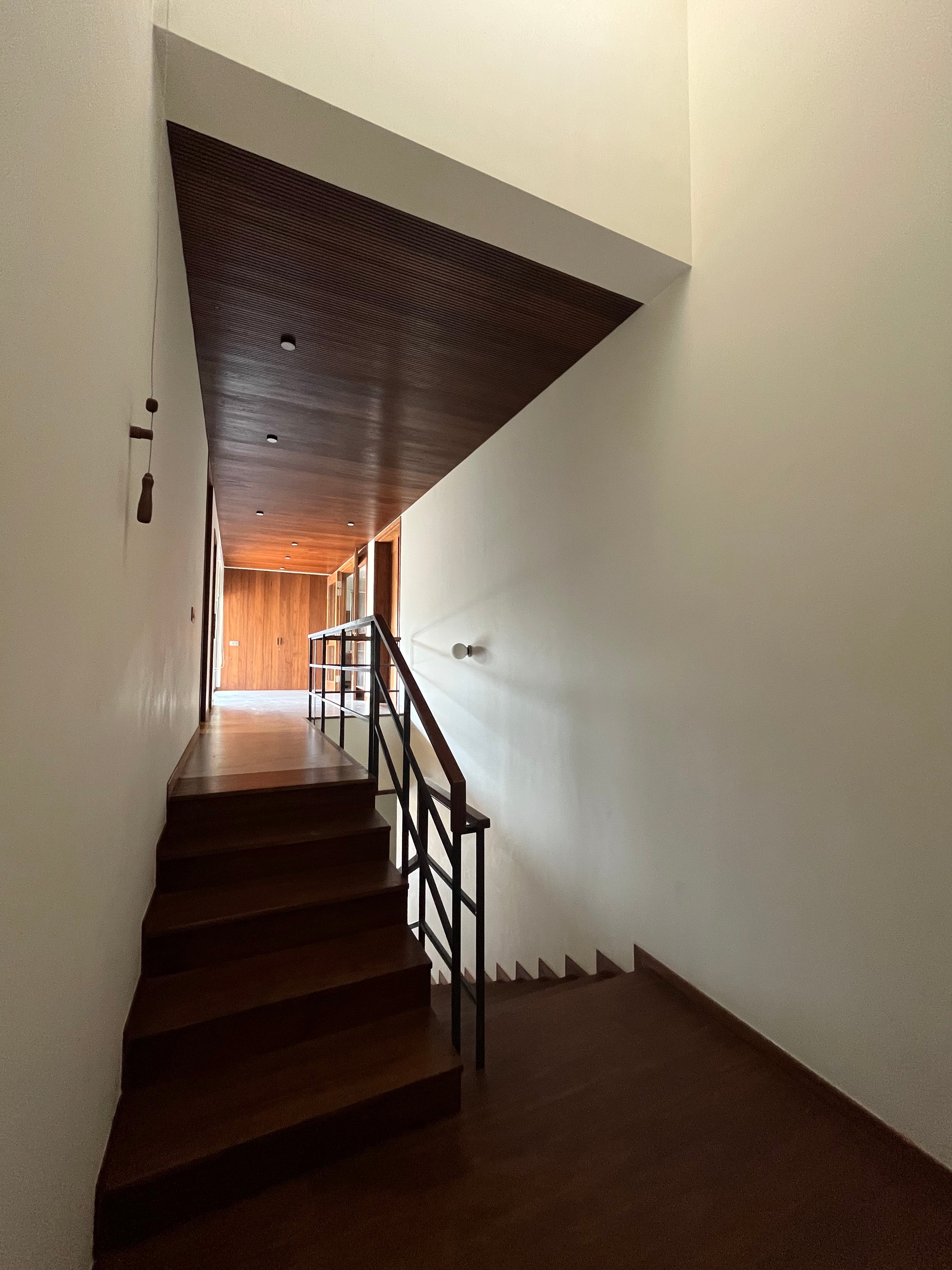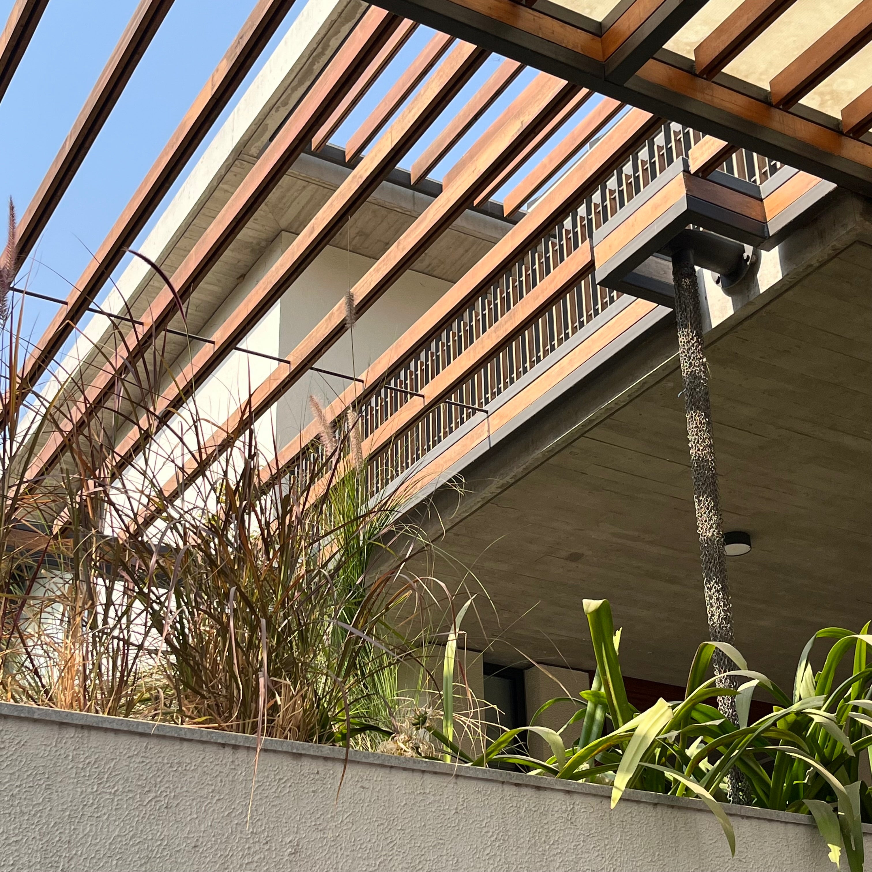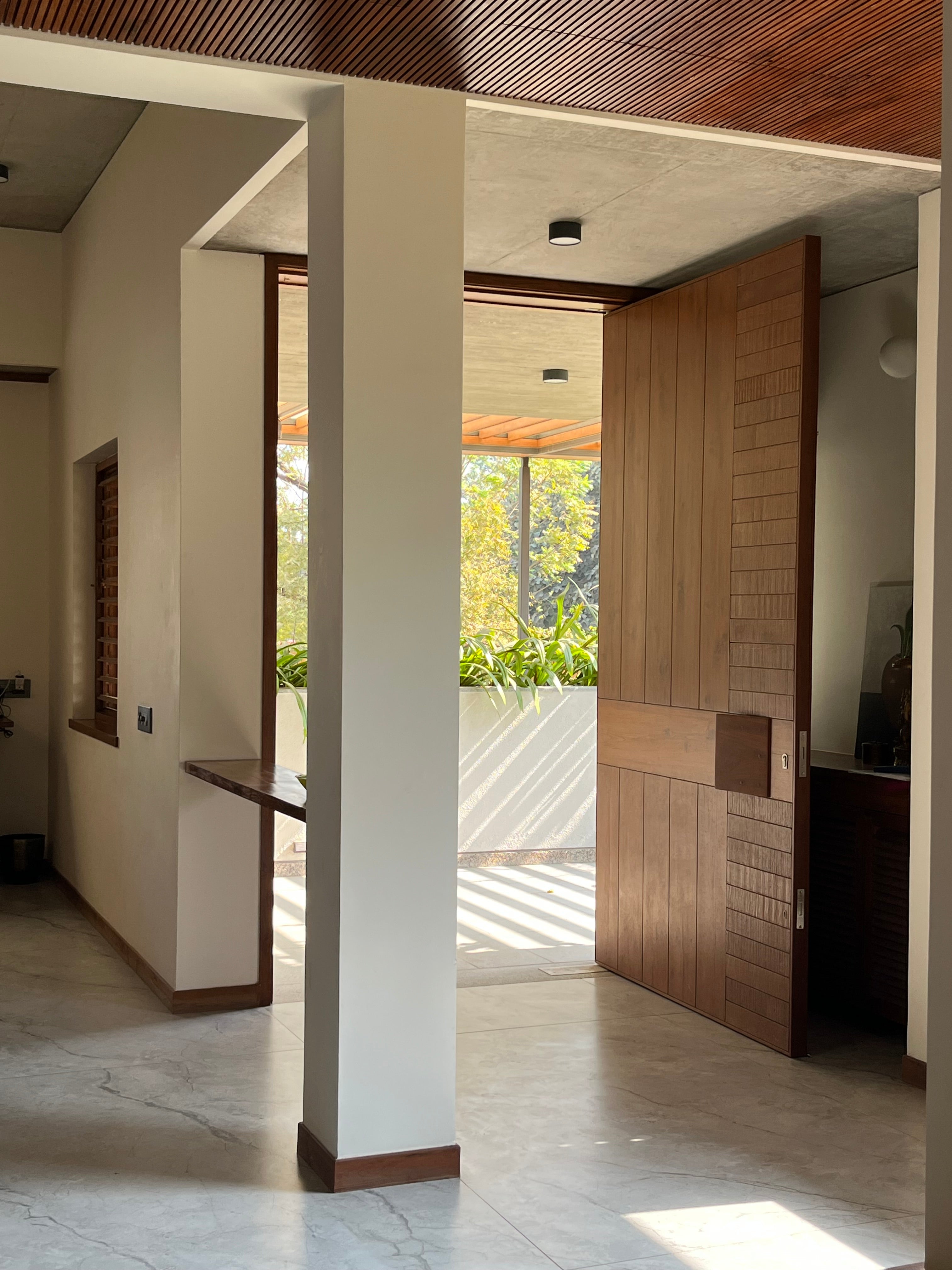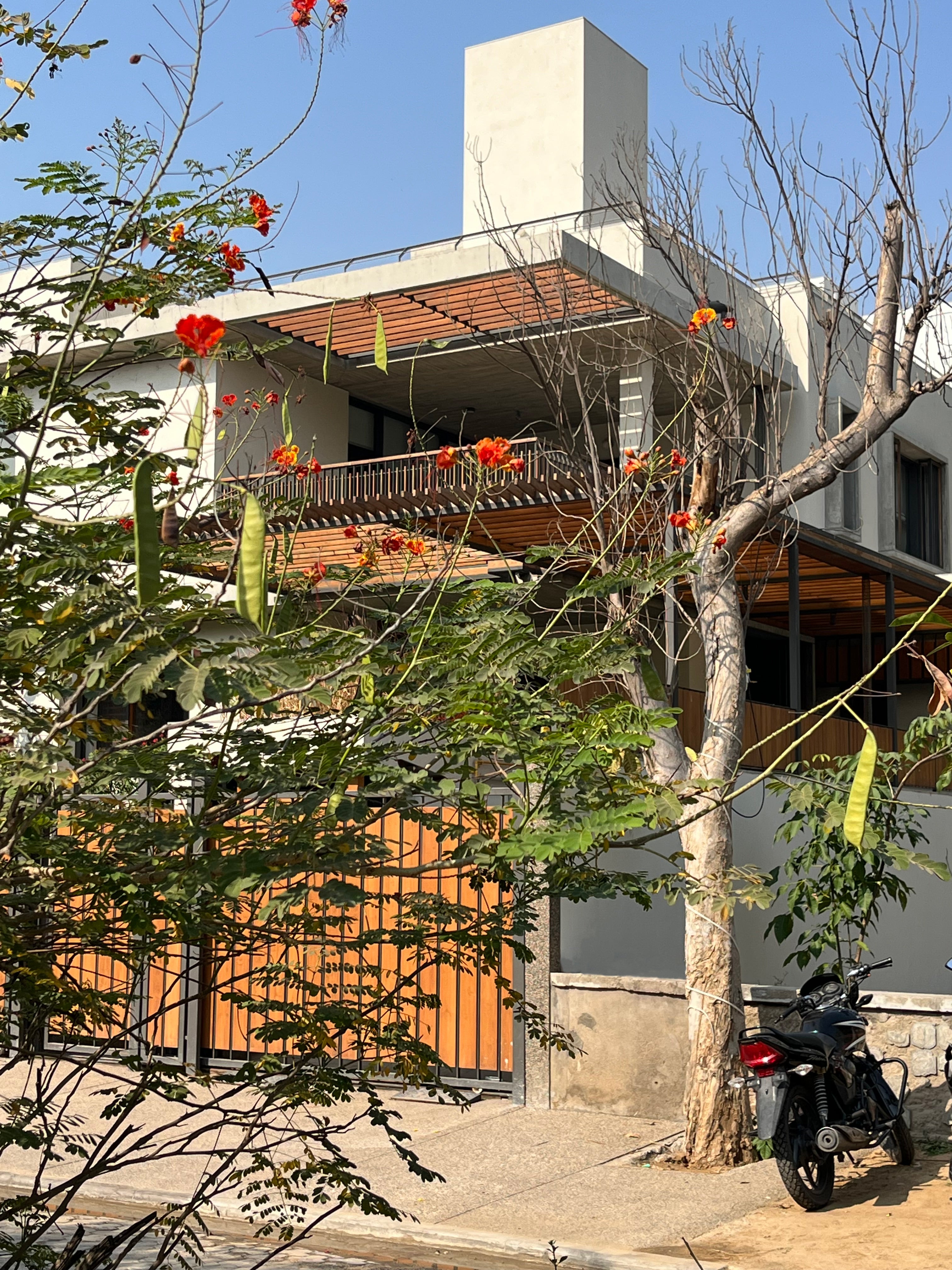 A large urban plot accommodates two independent residences for a semi-joint family across three generations. The seniors occupying the house to the south, the living realms are defined with distinct privacy zones, gardens and social spaces that turn away from each other. A forced dis-association reflected in the plan. However, orientation to the sun and wind flow dictate the architectural strategies for both dwellings. Accessed north-south, the houses are conceptualized as large urban homes with generous proportions of rooms. Continuous living, dining and leisure spaces open towards either the patio or the garden creating seamless extensions along the east-west axis and allowing play of natural light.