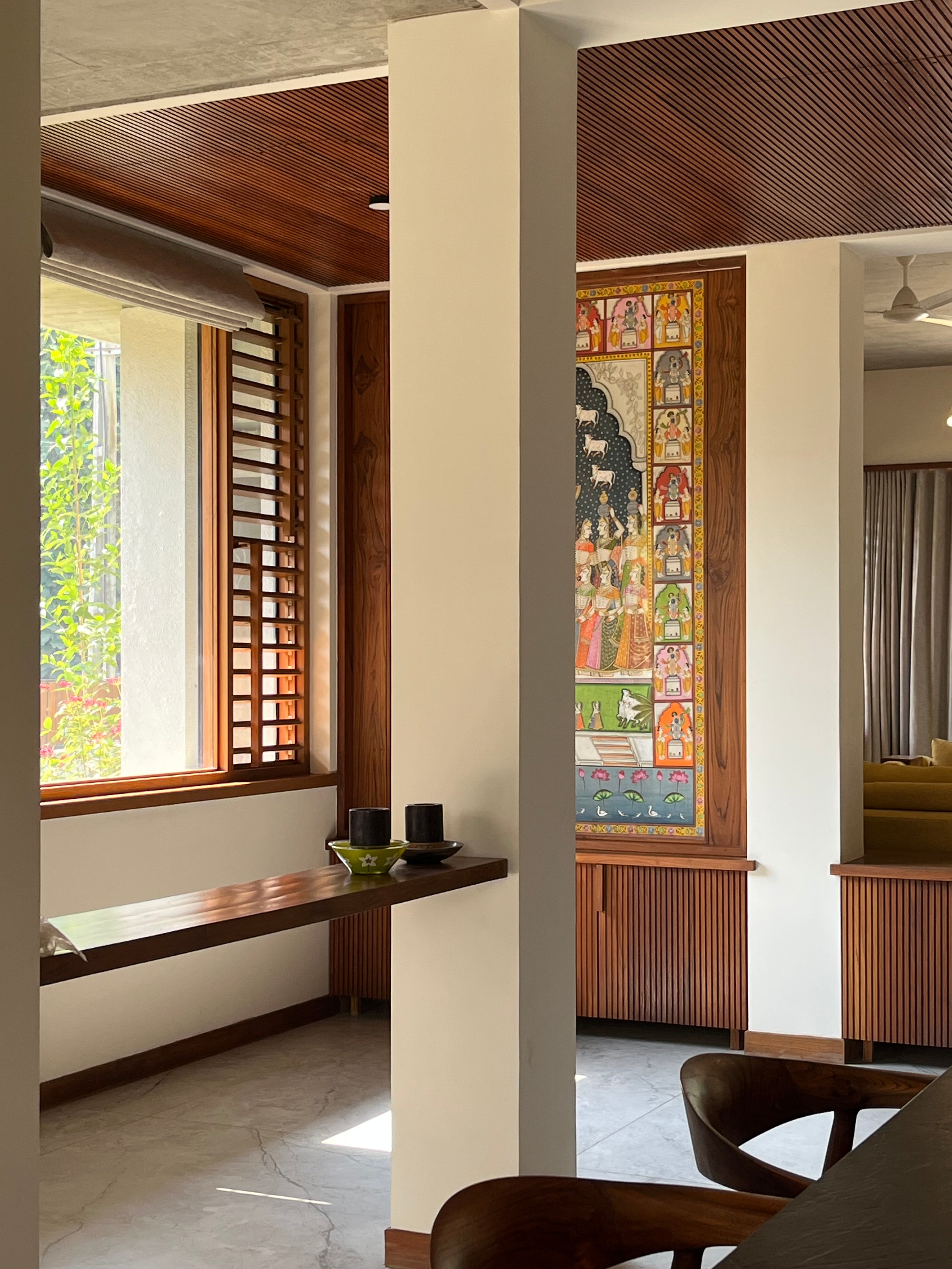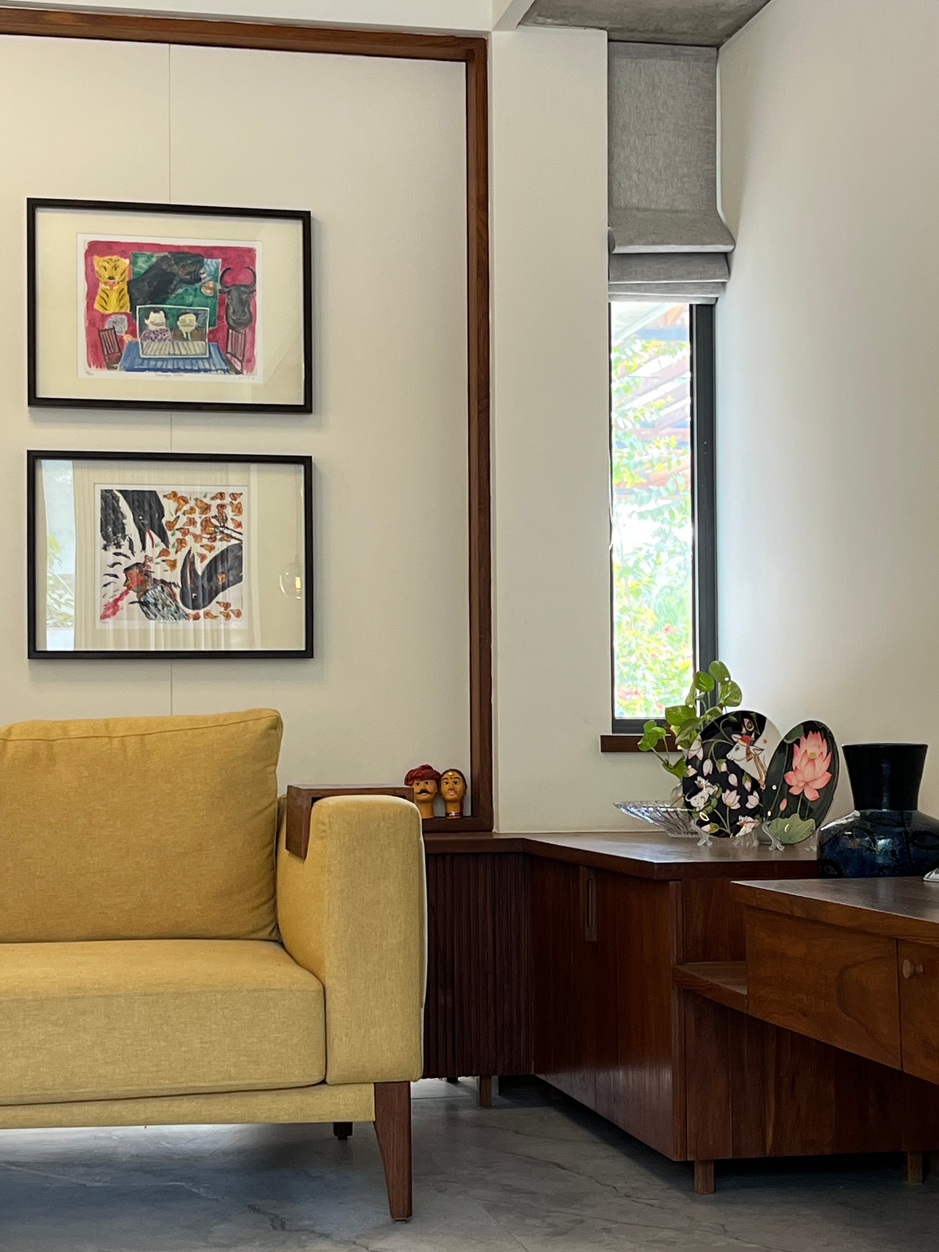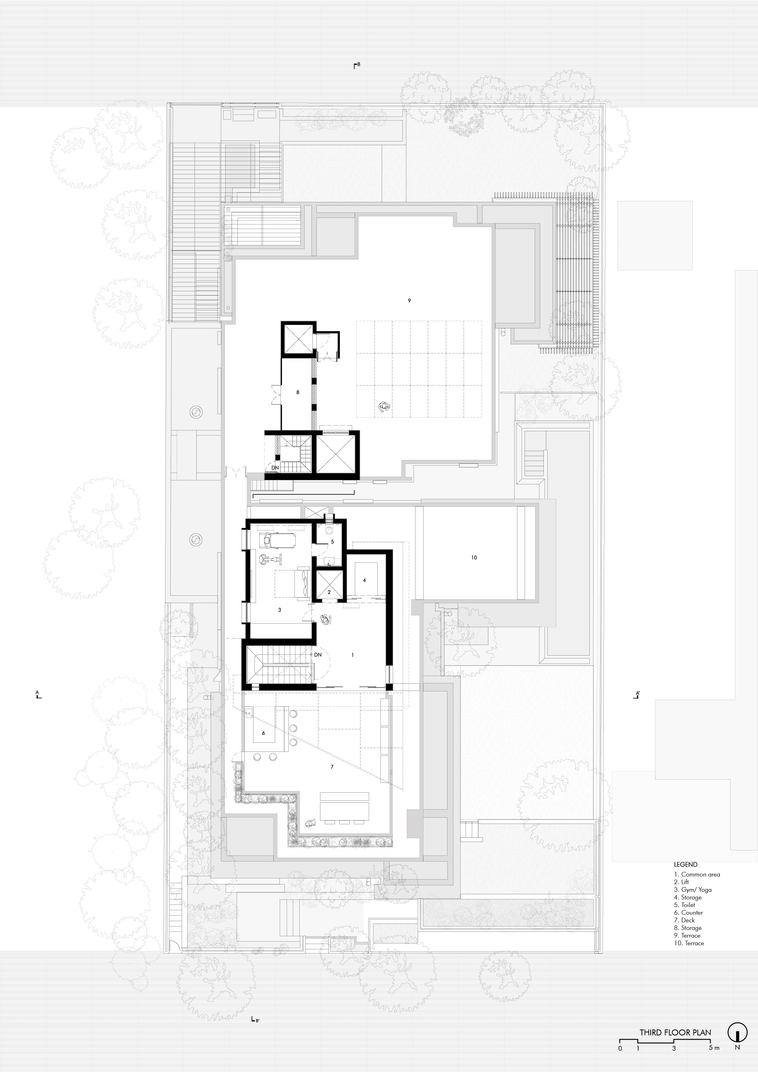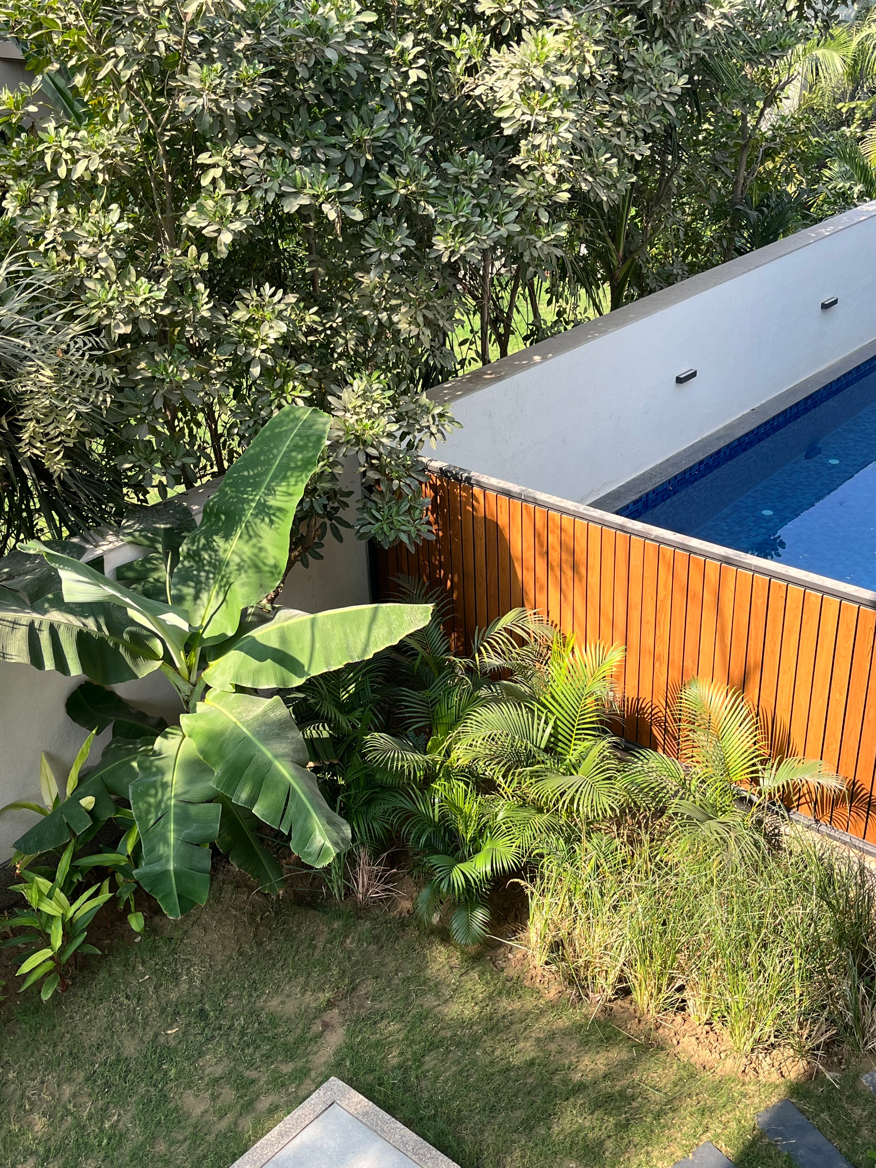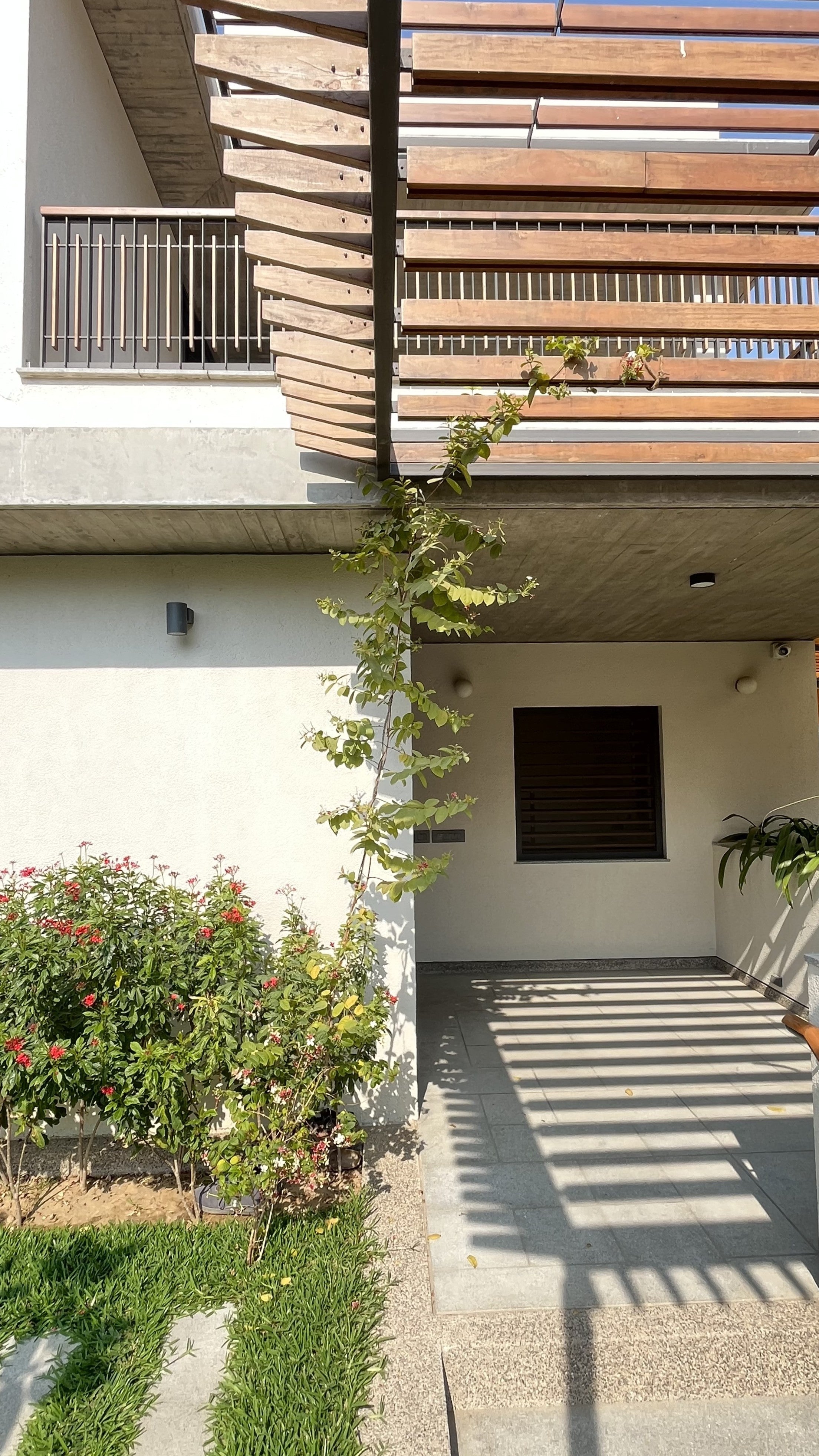 A large urban plot accommodates two independent residences for a semi-joint family across three generations. The seniors occupying the house to the south, the living realms are defined with distinct privacy zones, gardens and social spaces that turn away from each other. A forced dis-association reflected in the plan. However, orientation to the sun and wind flow dictate the architectural strategies for both dwellings. Accessed north-south, the houses are conceptualized as large urban homes with generous proportions of rooms. Continuous living, dining and leisure spaces open towards either the patio or the garden creating seamless extensions along the east-west axis and allowing play of natural light.